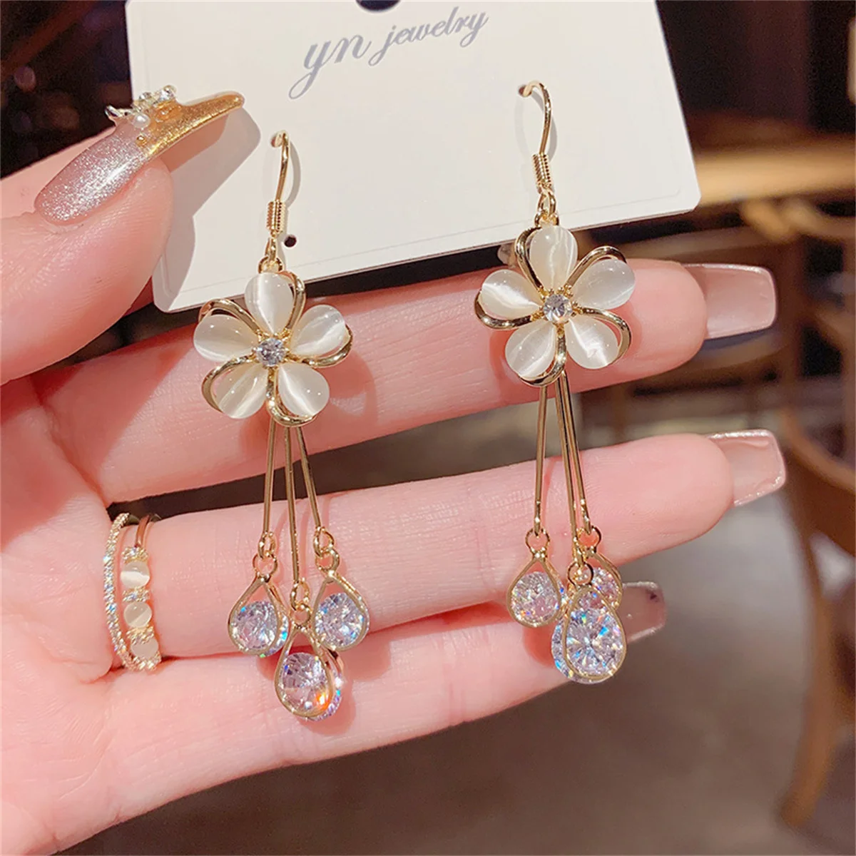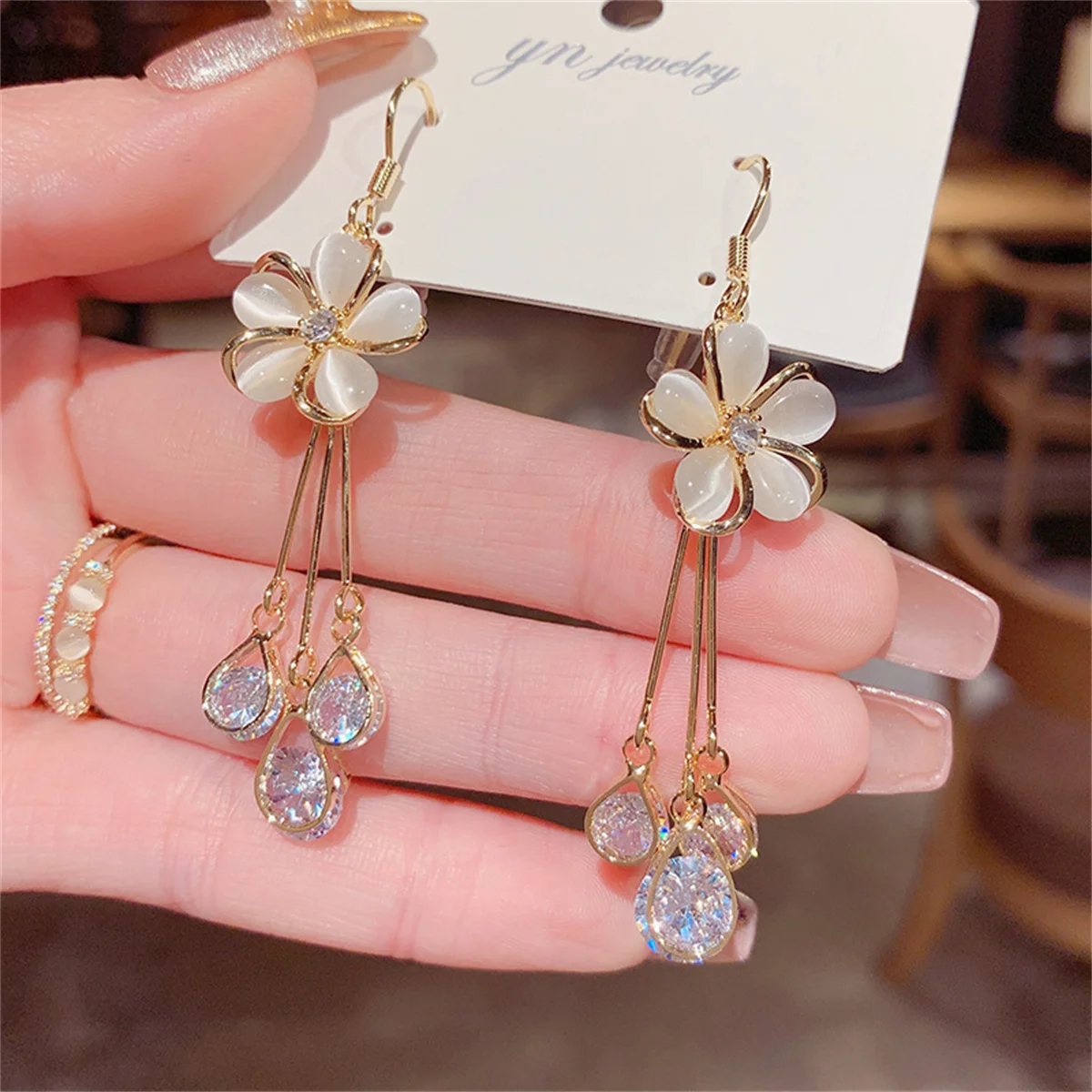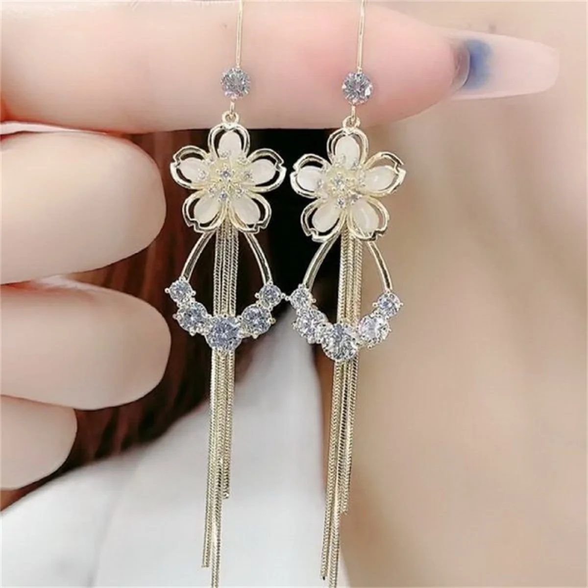 New Korean Exquisite Opal Flower Earrings For Women Temperament Rhinestone Long Tassel Earring Girl Elegant Wedding Jewelry Gift