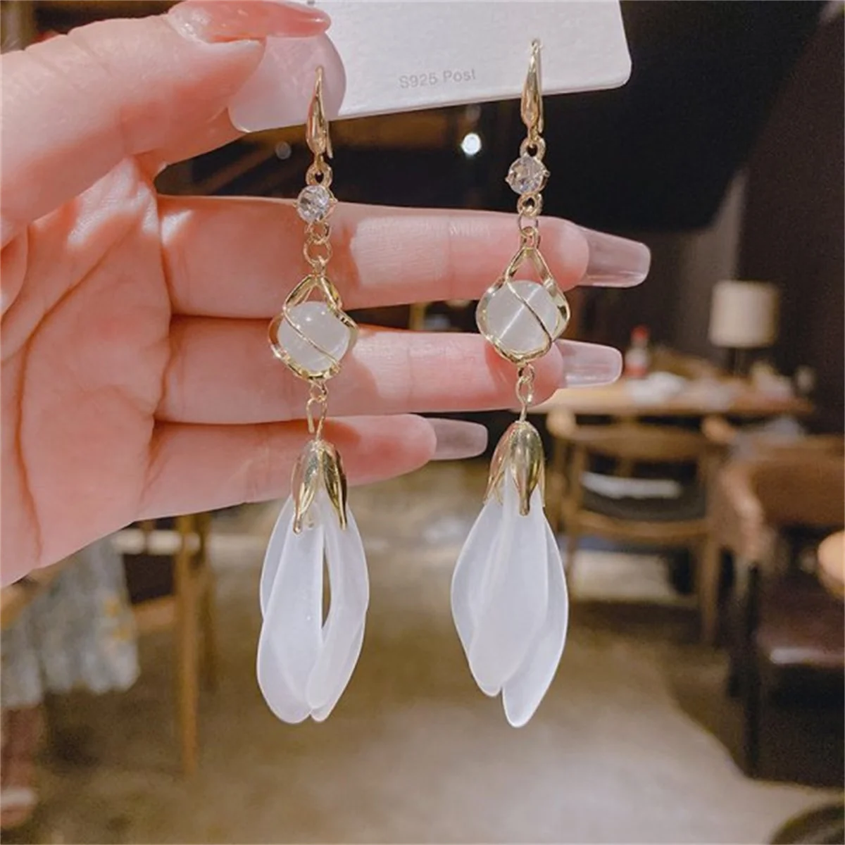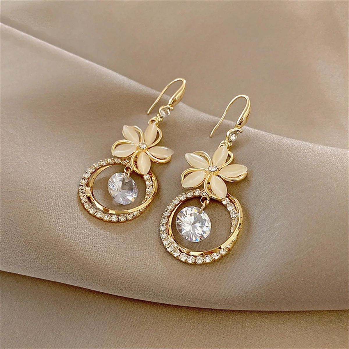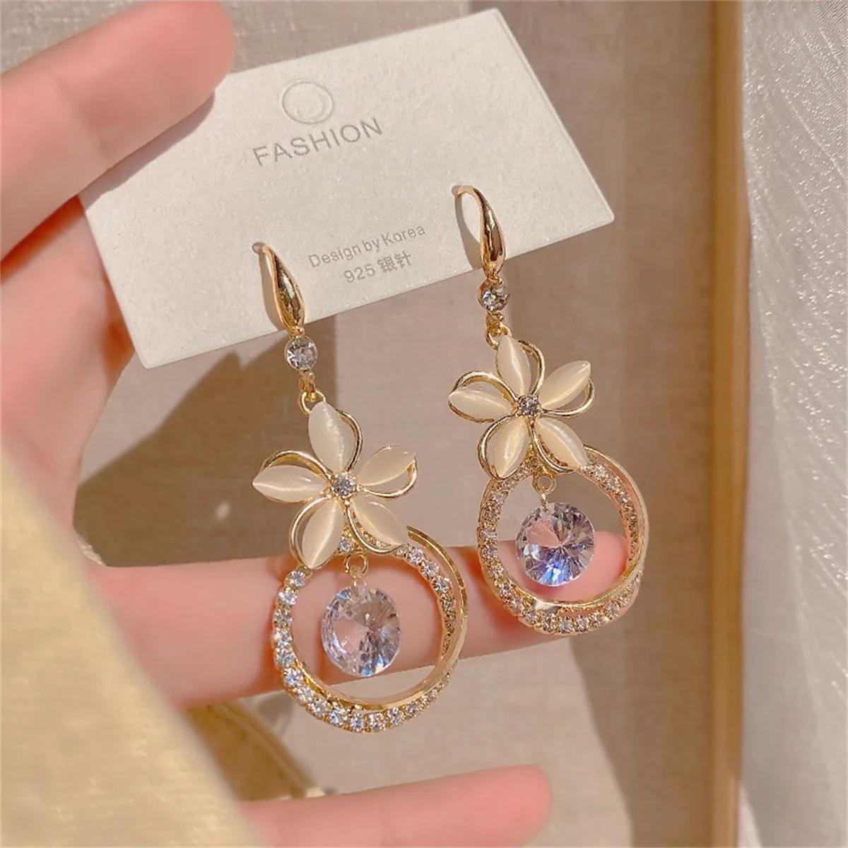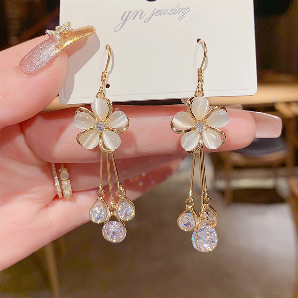 New Korean Exquisite Opal Flower Earrings For Women Temperament Rhinestone Long Tassel Earring Girl Elegant Wedding Jewelry Gift