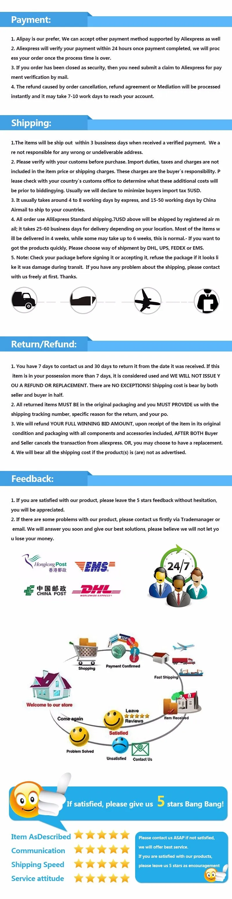 3,transport through ePacket, AliExpress Standard Shipping, EMS, DHL, UPS,etc.,buyers can choose their own appropriate mode of transport.