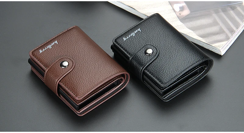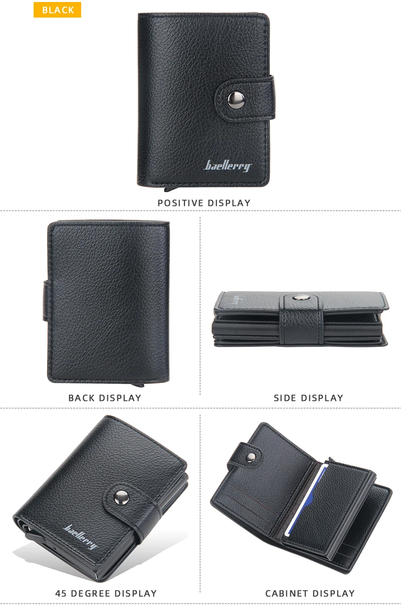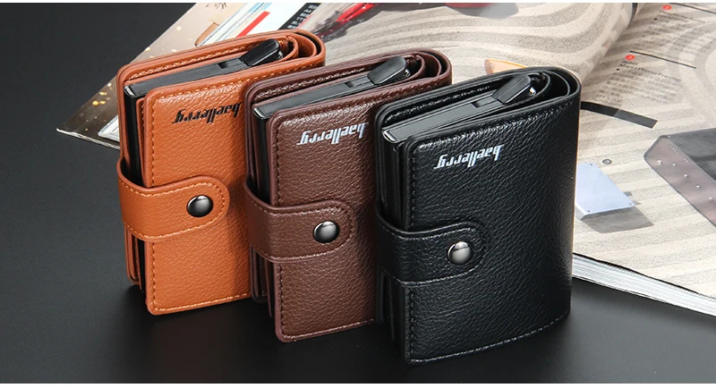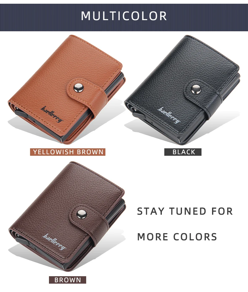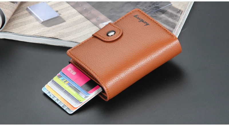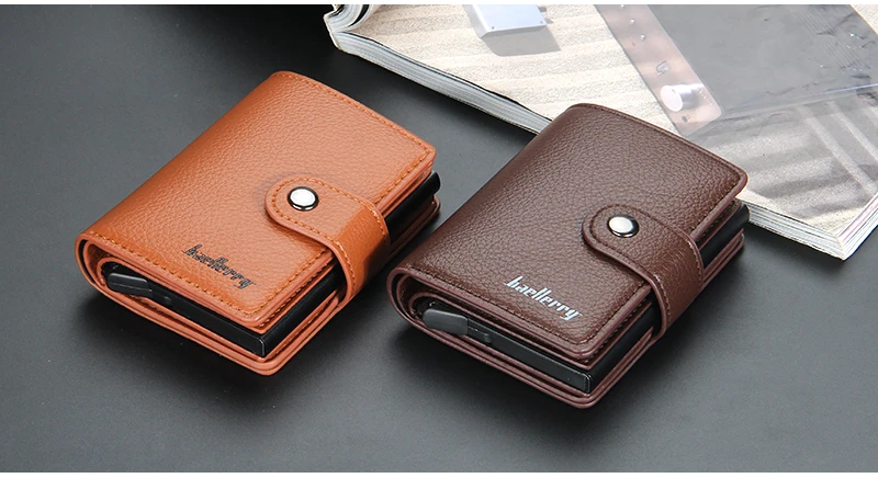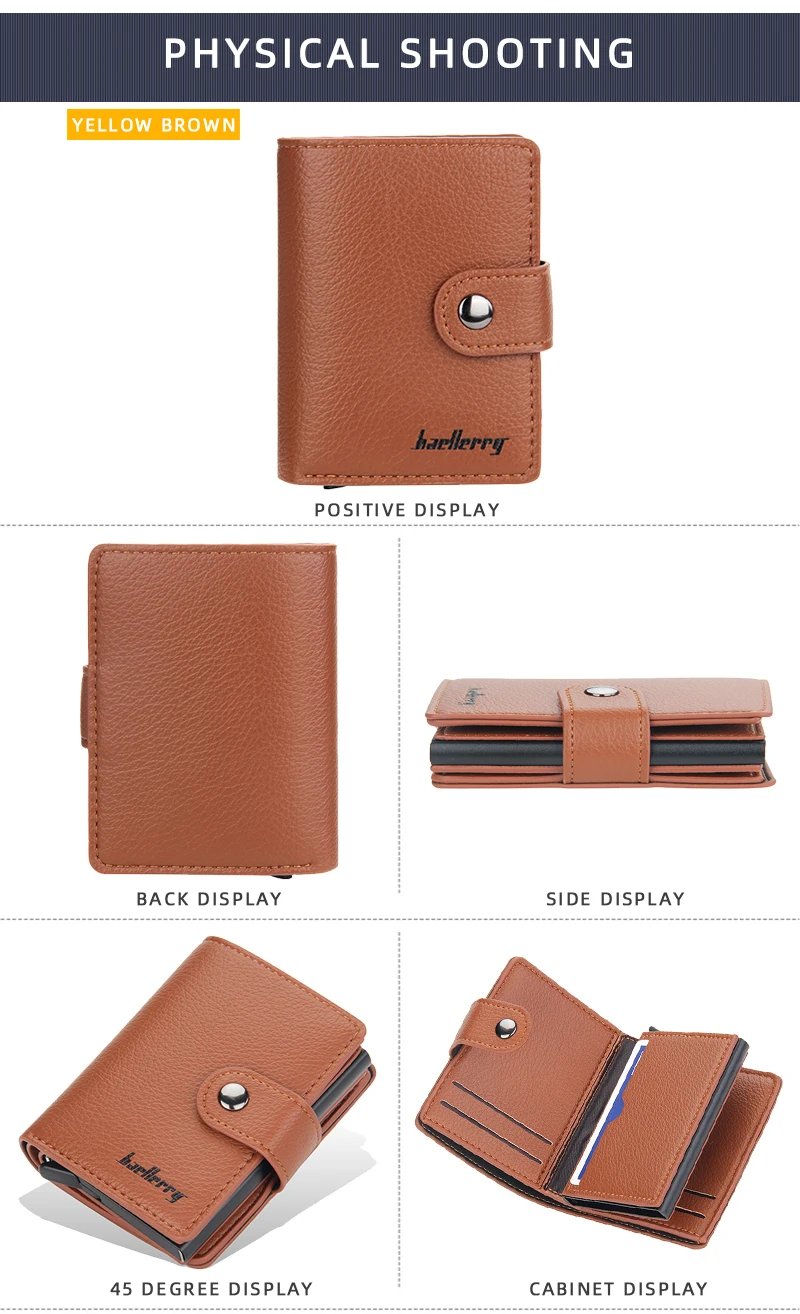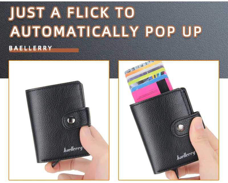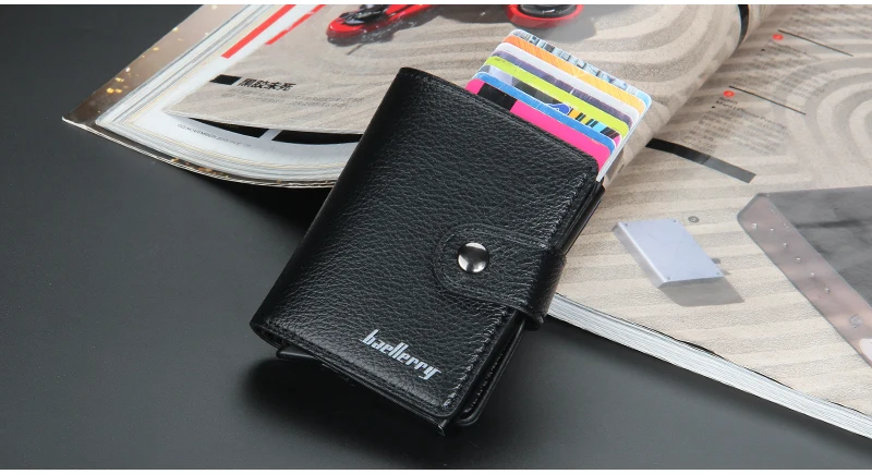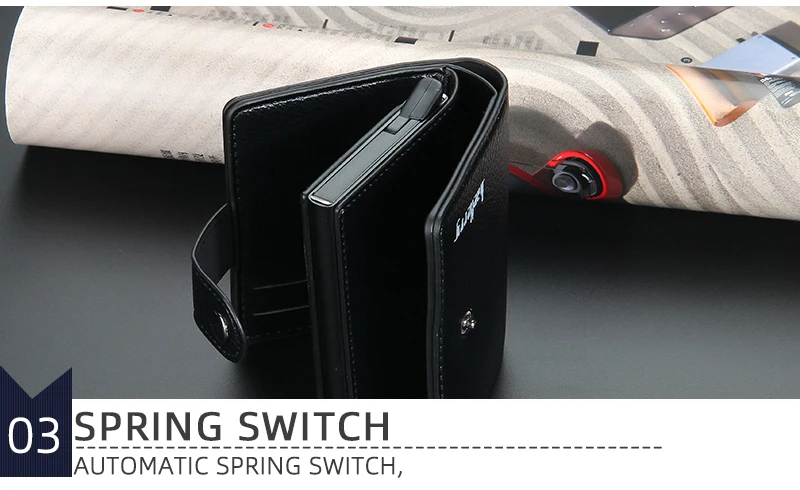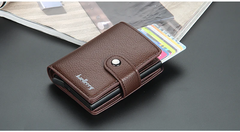 New Lychee Pattern Men Card Holder RFID Automatic Elastic Card Buckle Wallets for Men Purse Metal Aluminum Box Card Case