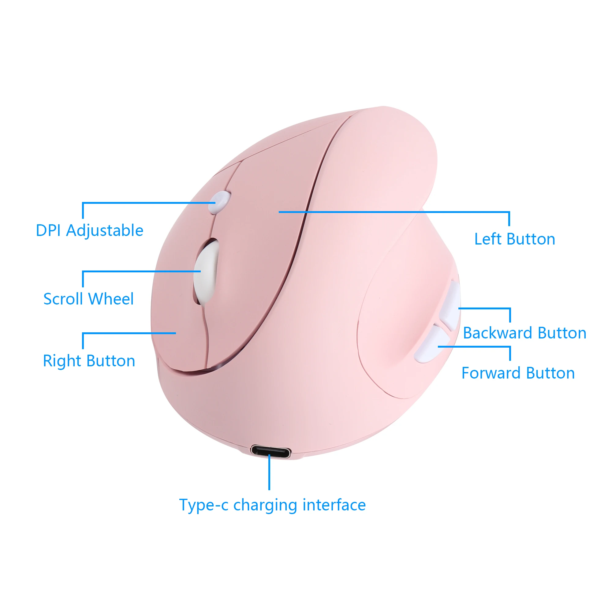 New Pink Vertical Mice Rechargeable 6D Ergonomic 2.4G Wireless Mouse USB Receiver 1600 Adjustable DPI 6 Buttons Mause for PC