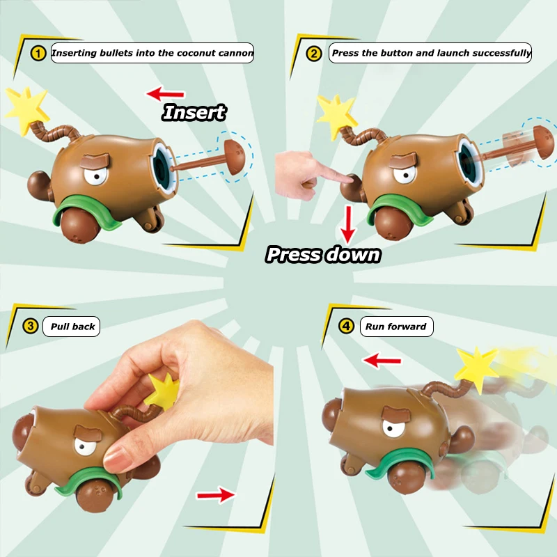 New Plants Vs Zombies 2 Coconut Cannon Toy Set Pull Back Car Action Figures Battle Game Model Game Character Kid Toys Boy Gift
