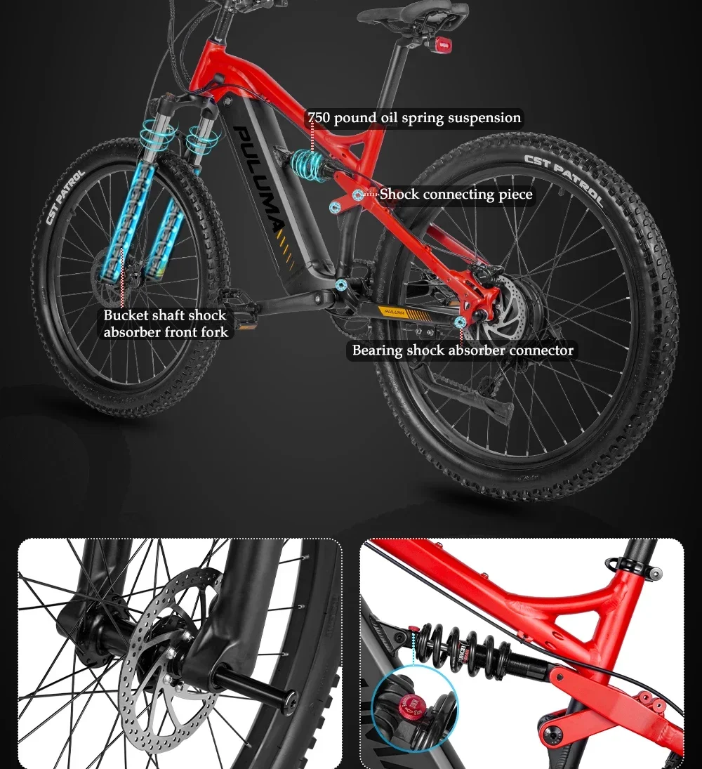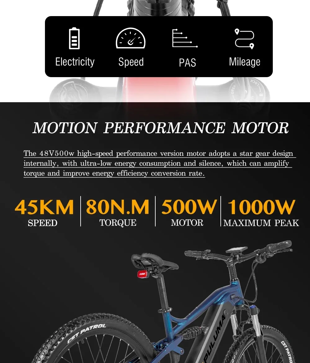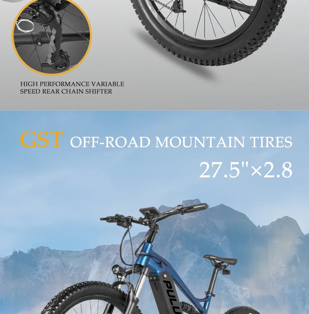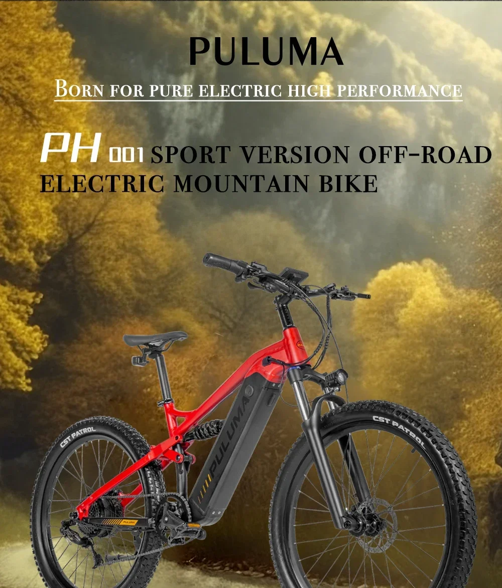 New PULUMA PH001 electric bicycle 1000W 48V 20AH Panasonic battery 27.5*2.8-inch tires adult off-road electric mountain bike