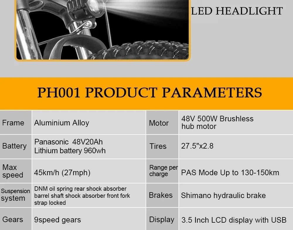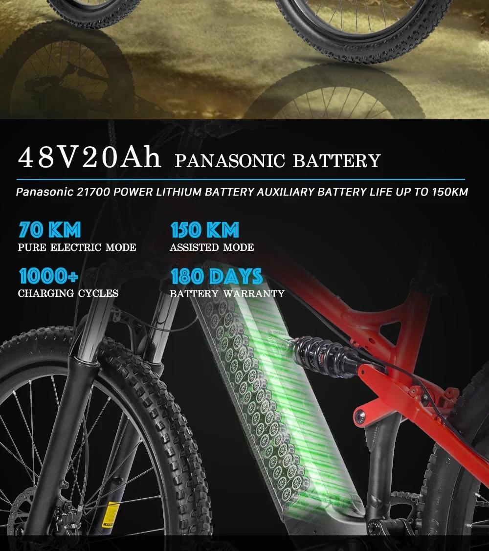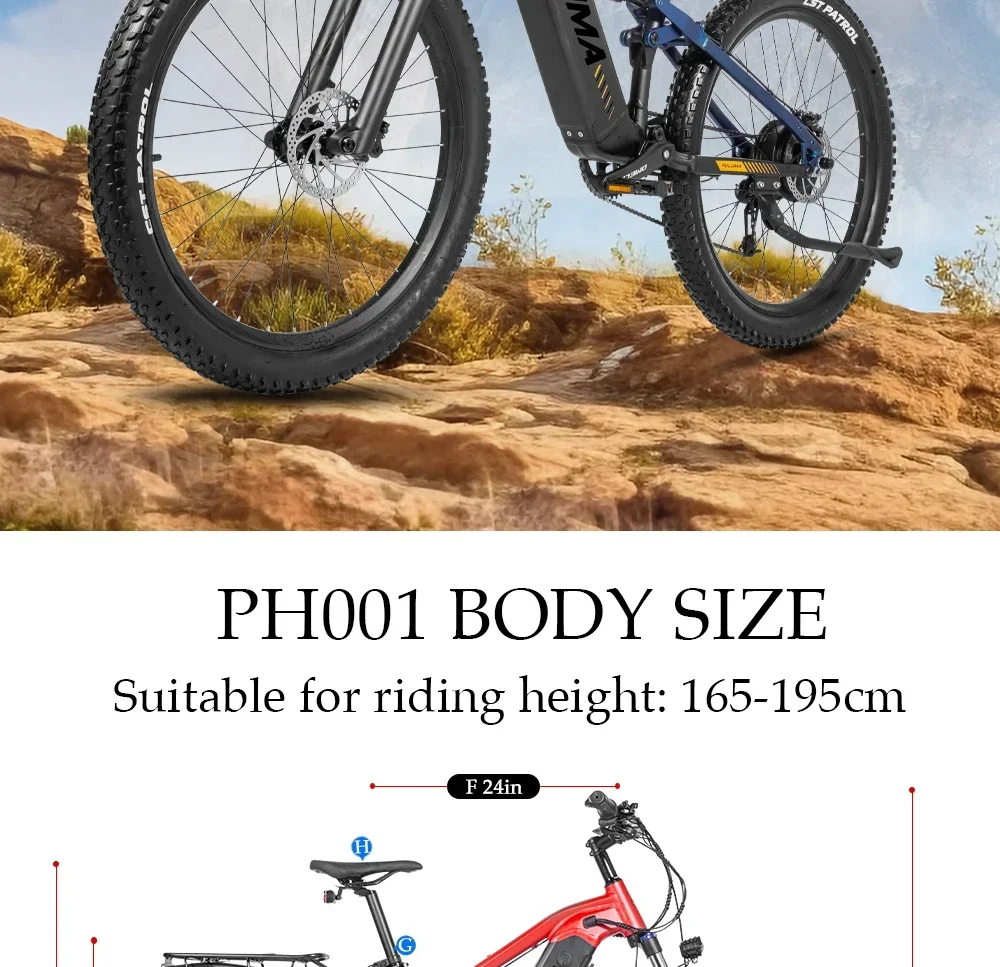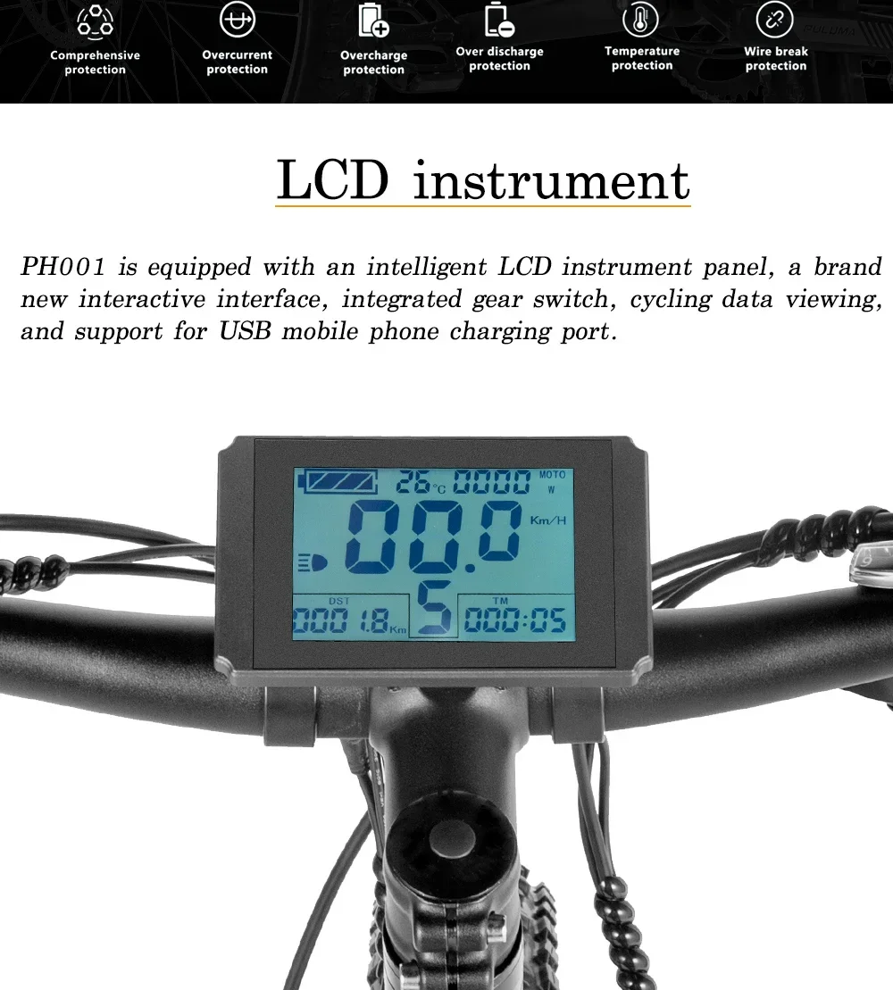 New PULUMA PH001 electric bicycle 1000W 48V 20AH Panasonic battery 27.5*2.8-inch tires adult off-road electric mountain bike