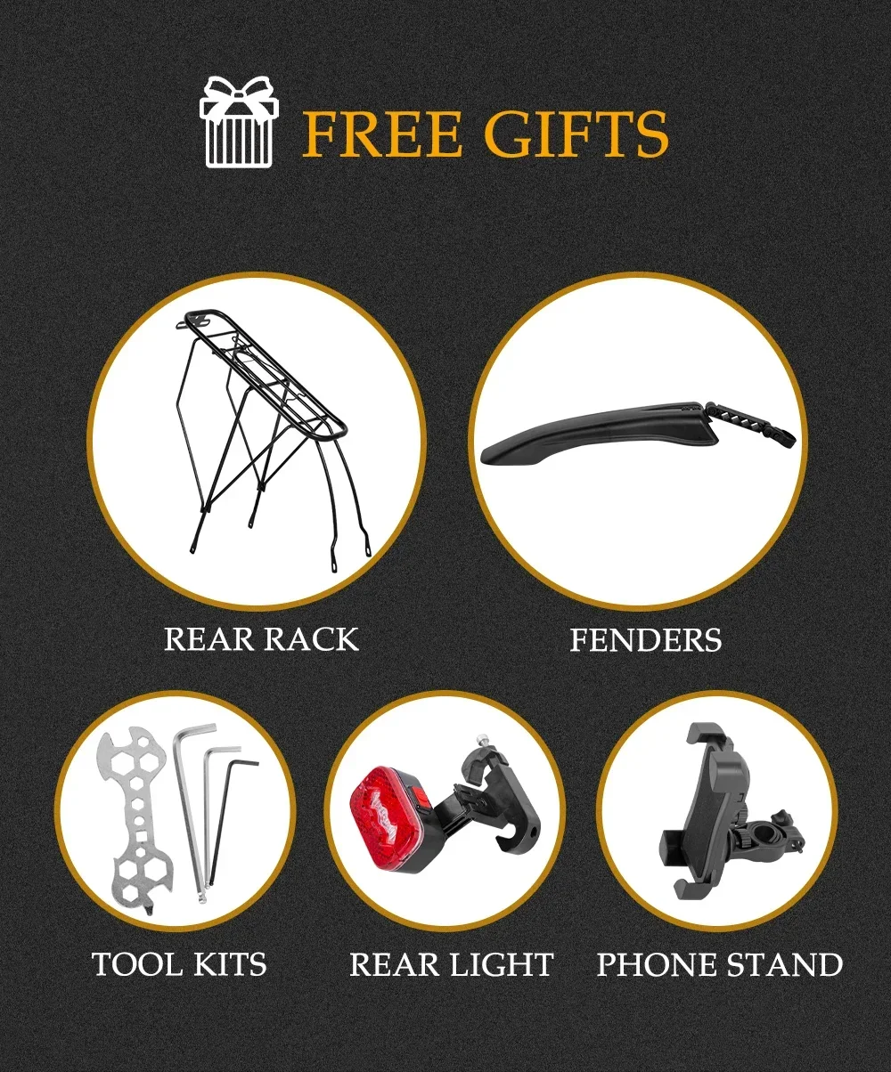 【Easy Installation】PH001 bike is 90% pre-installed, avoiding the complicated installation process, only need to complete some parts (front wheel, handlebar, pedals). The overall appearance of this e-bike is simple and sporty while taking fashion into account. If you have any questions about the installation, you can contact us in time.