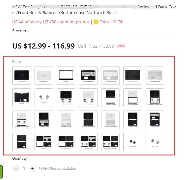 Part Description: LCD Back Cover/Front Bezel/Palmrest/Bottom Case/Hinges