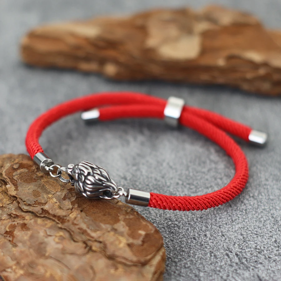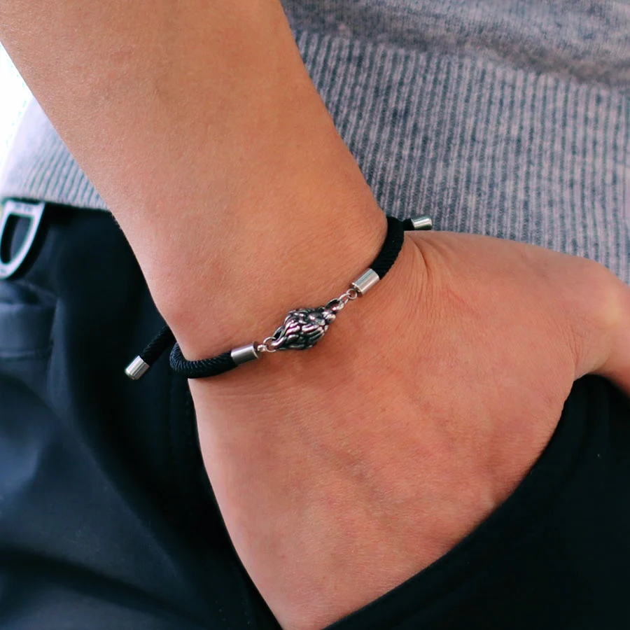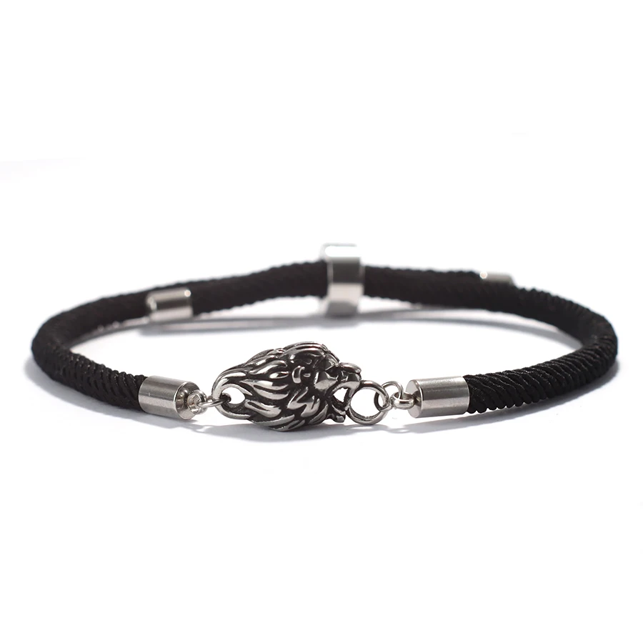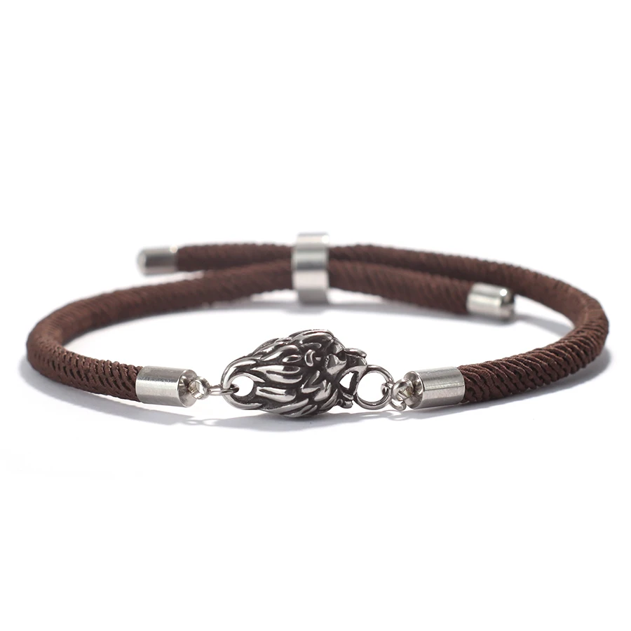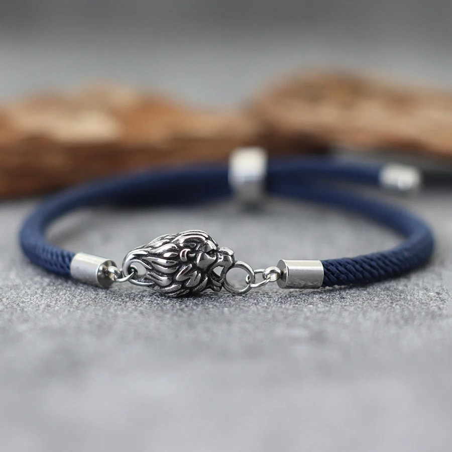 New Retro Animal Lion Bracelet For Men Unfading Grade A 4mm Thread Braslet Adjustable Nautical Wrap Braclet Cool Biker Jewelry