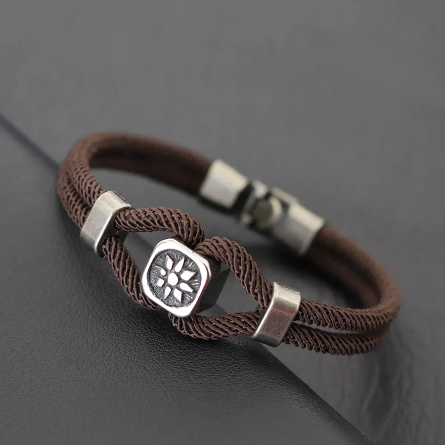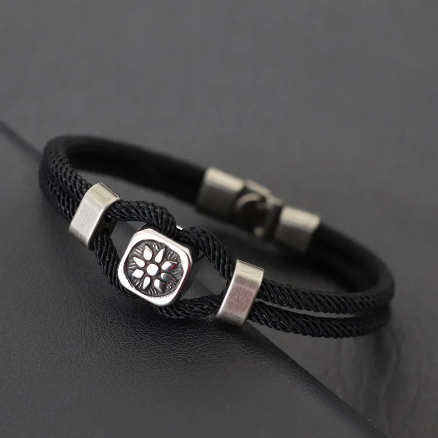 New Retro Sun Flower Rope Bracelet Men Grade A 4mm Milan Thread Fabric Wrap Braslet Outdoor Sports Cool Biker Hand Accessories