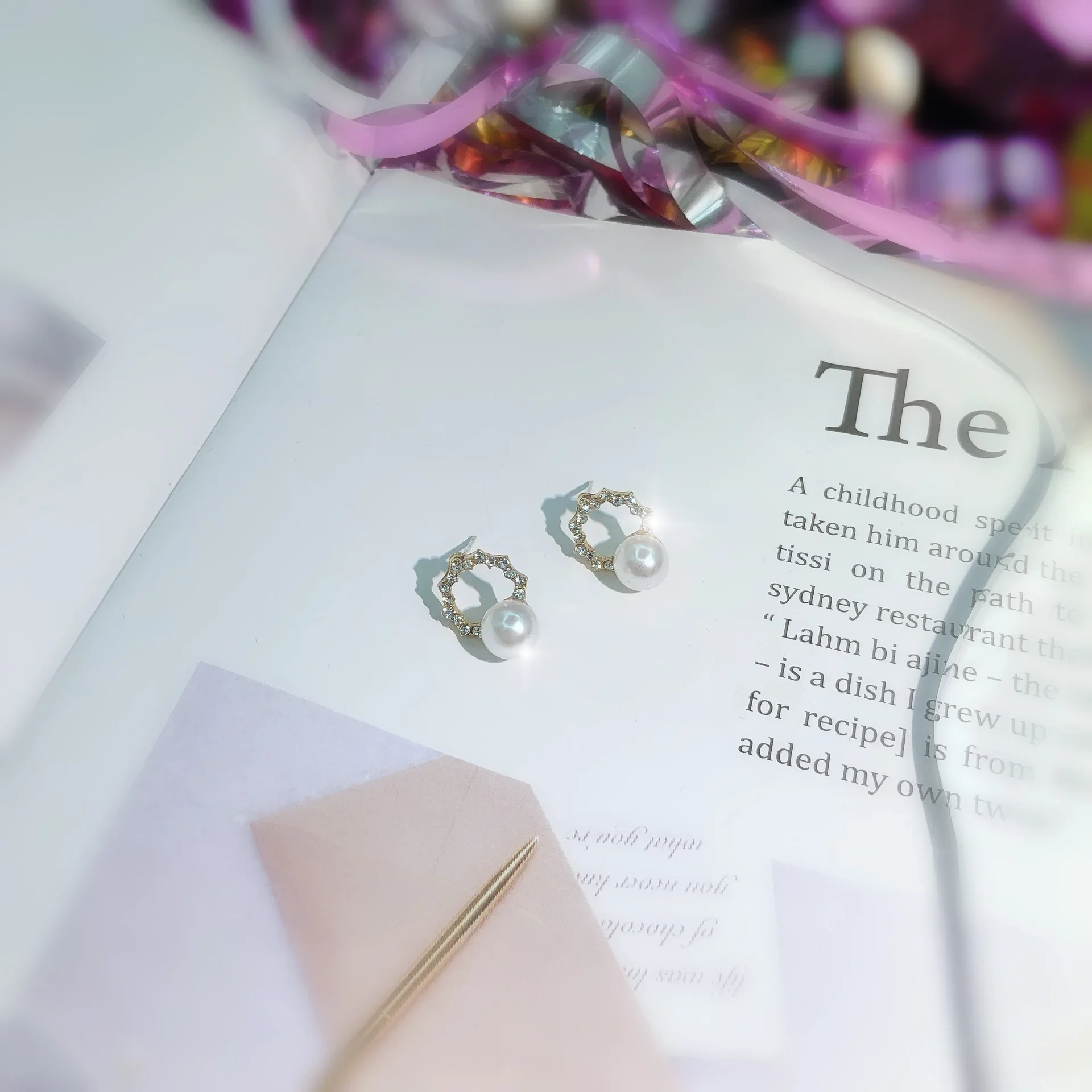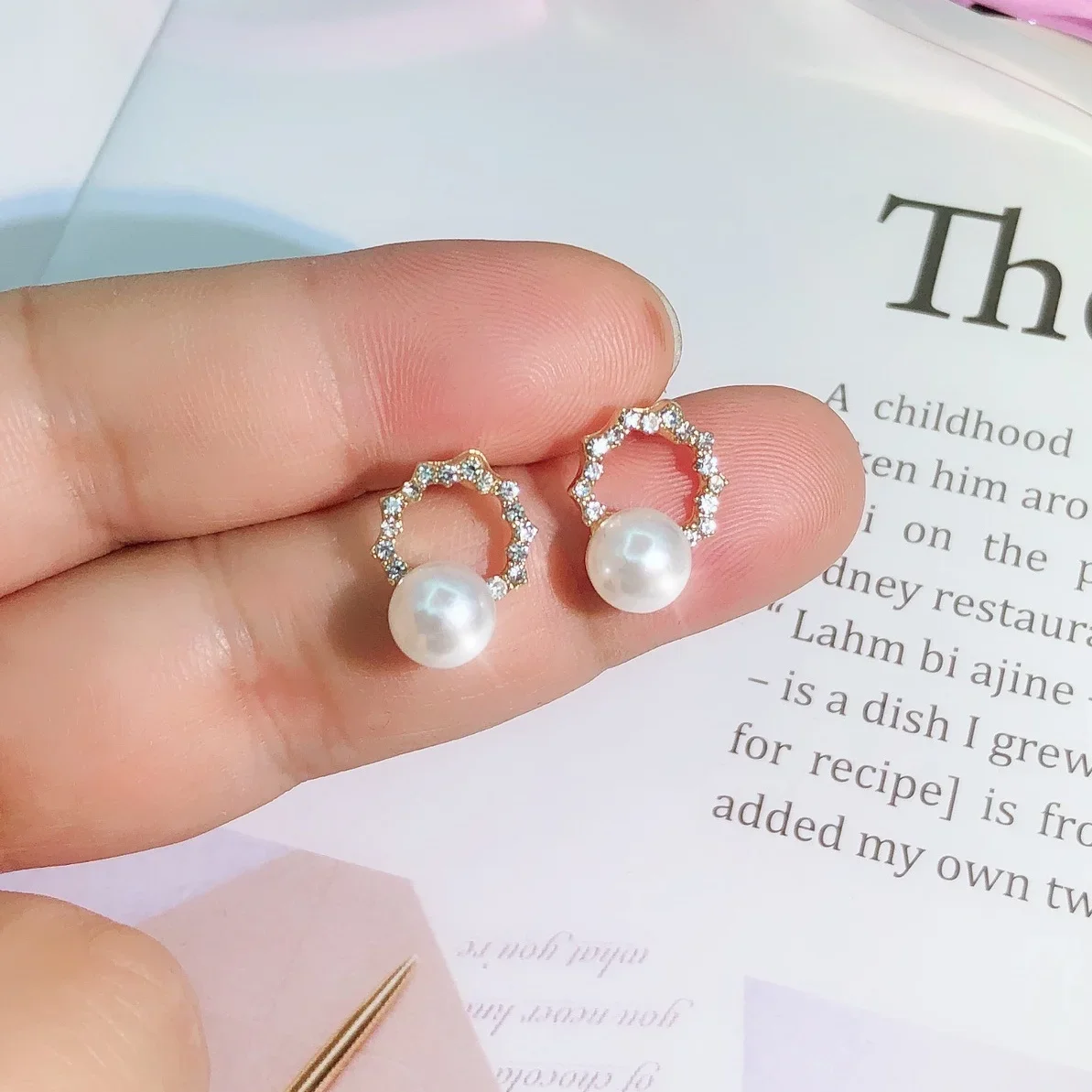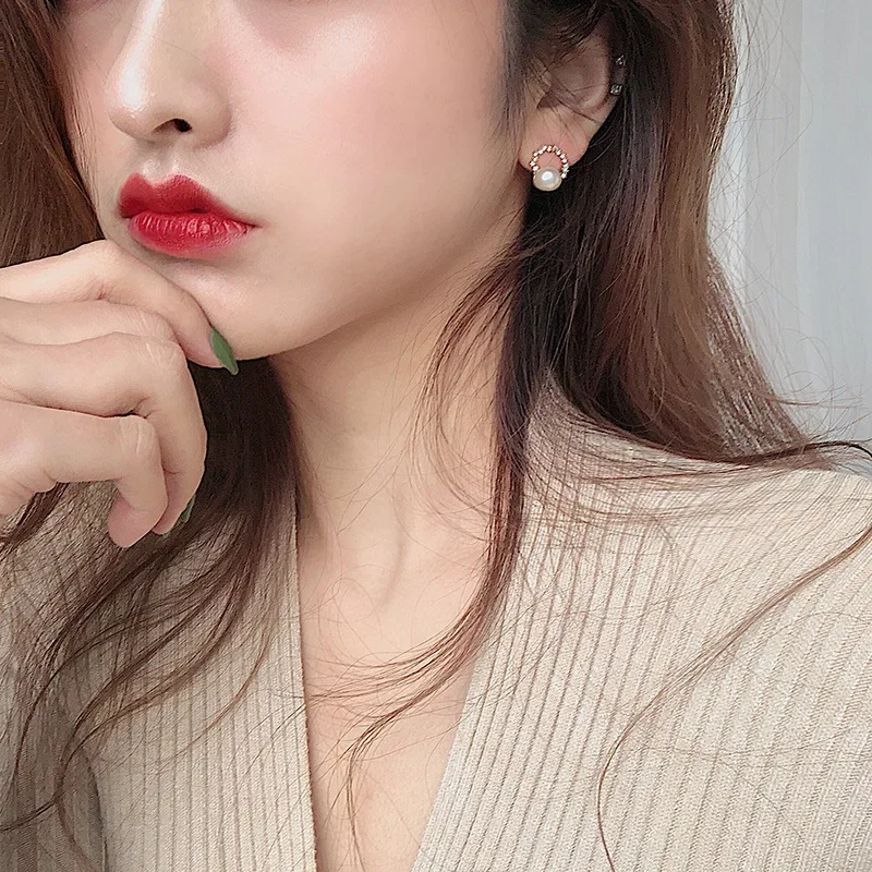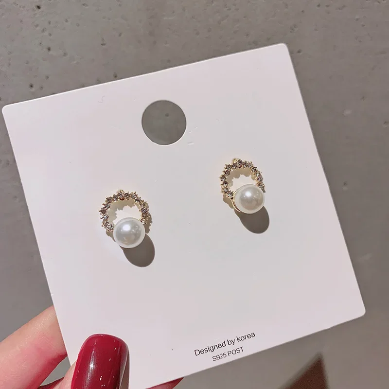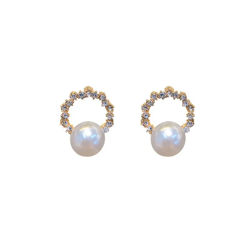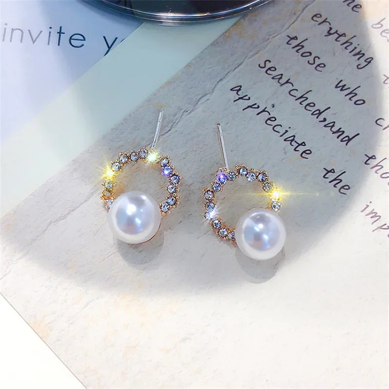 New Round Crystal Imitation Pearl Stud Earring for Women Sweet Temperament Ear Jewelry Accessories Wholesale Christmas Day Gift