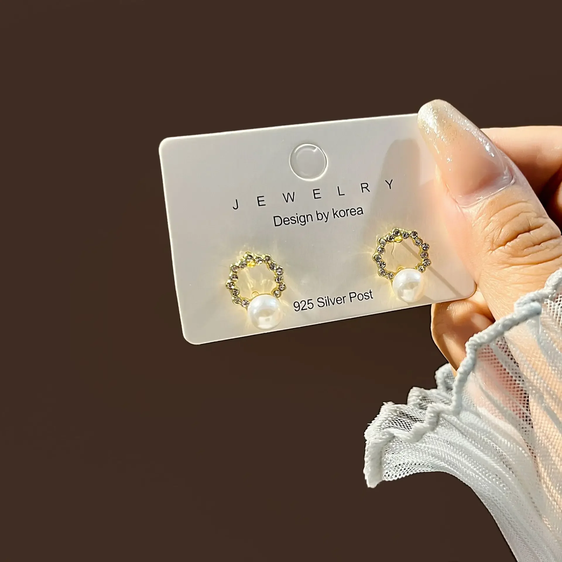 Korean Imitation Pearl Hollow Geometry Oval Stud Earring for Women Simple Temperament Sweet Jewelry Christmas Girlfriend Gift