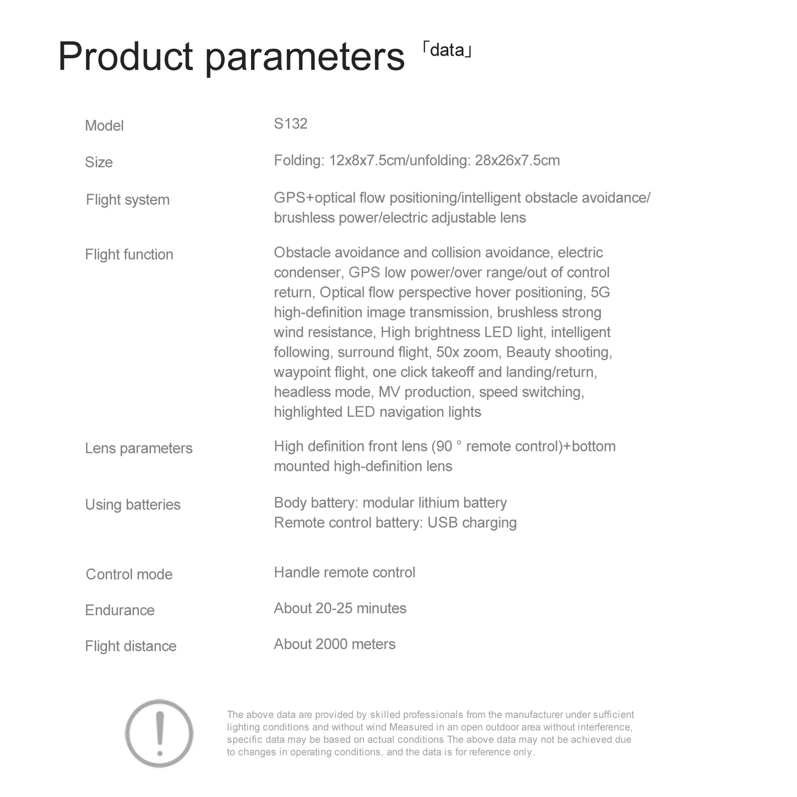 Flight time: about 20 minutes (3.7V 2000mAH modular battery)