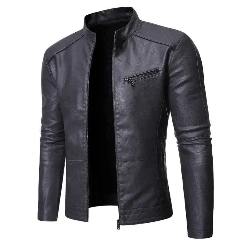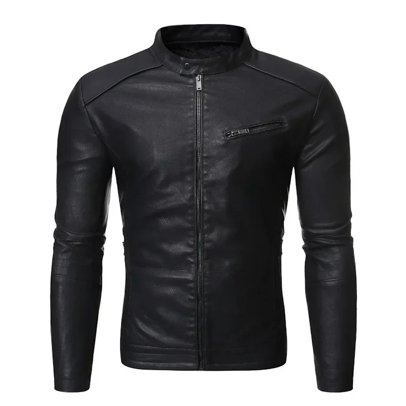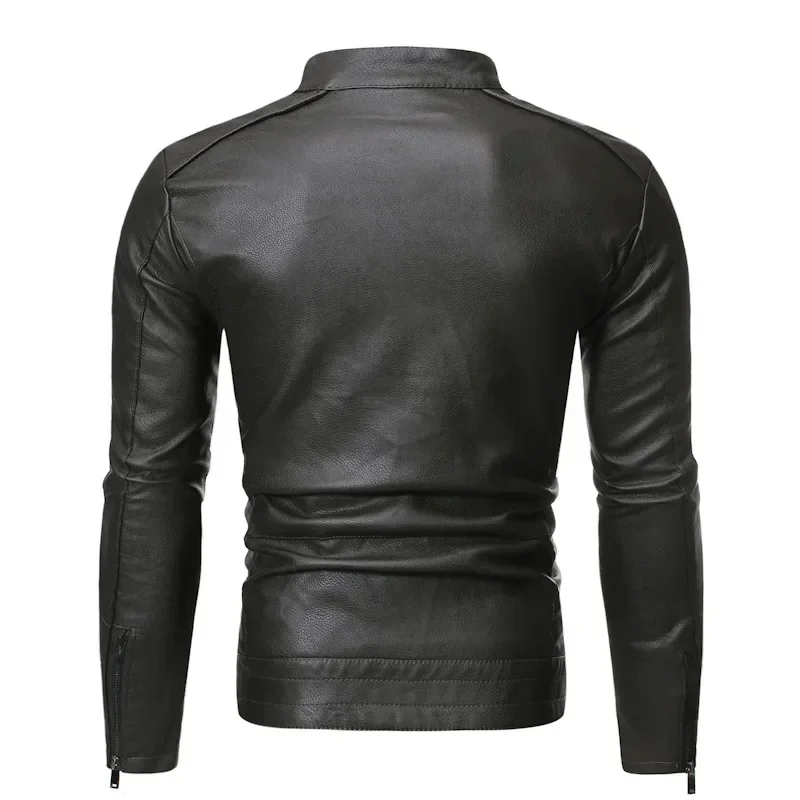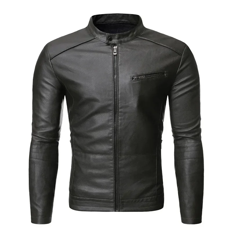 New Spring and Autumn Men’s Slim PU Leather Jacket Fashion Trend Korean Slim Fit Casual Men’s Leather Jacket Motorcycle Jacket