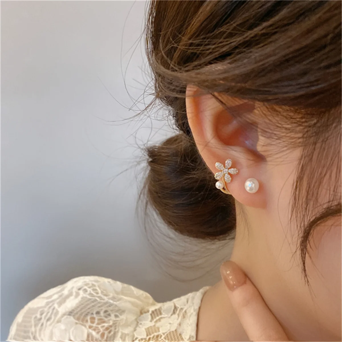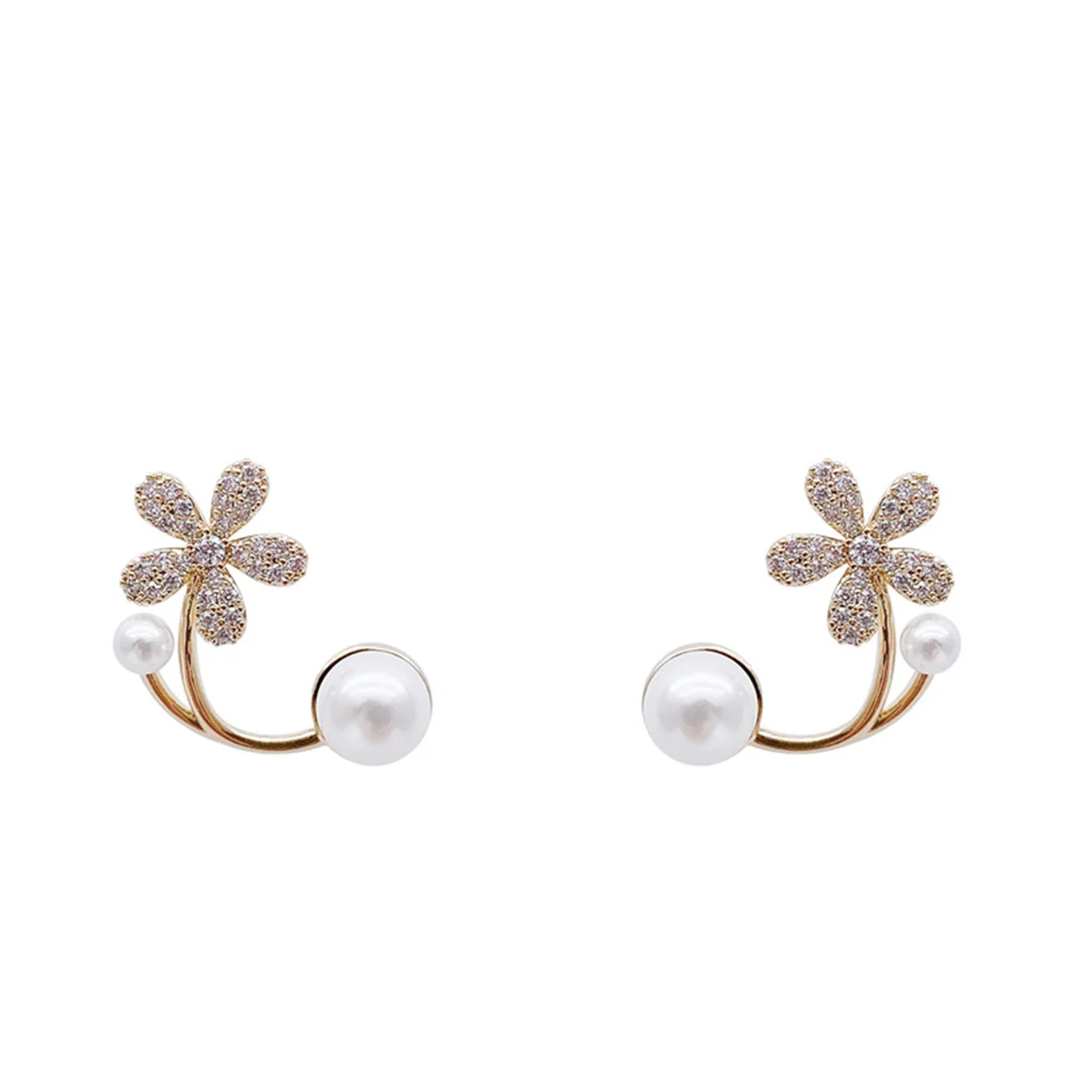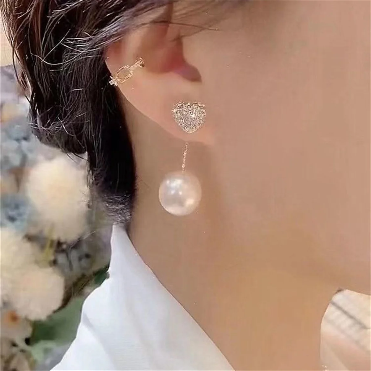 New Trend Korean Style Love Heart Pearl Earrings Cute Flower Rhinestone Stud Earrings For Women Fashion Jewelry Birthday Gifts