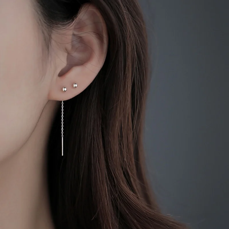 New Trendy Earrings For Women Geometric Ball Long Tassel Chain Drop Earring Girls Minimalism Ear Line Korean Accessories Jewelry