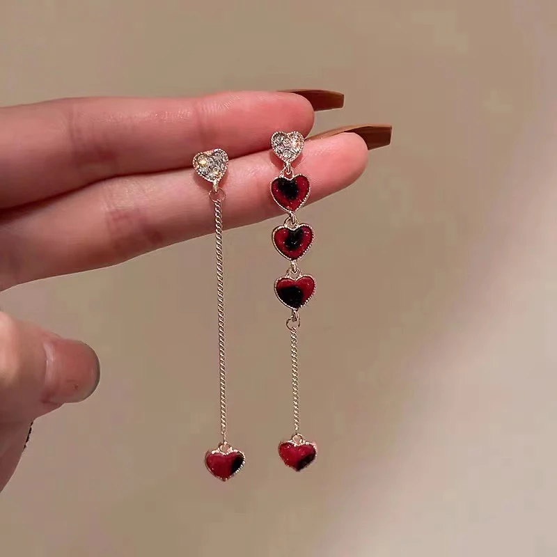 New Trendy Love Heart Zircon Tassel Earrings For Women Shiny Crystal Long Chain Asymmetric Dangle Earring Girl Party Jewelry