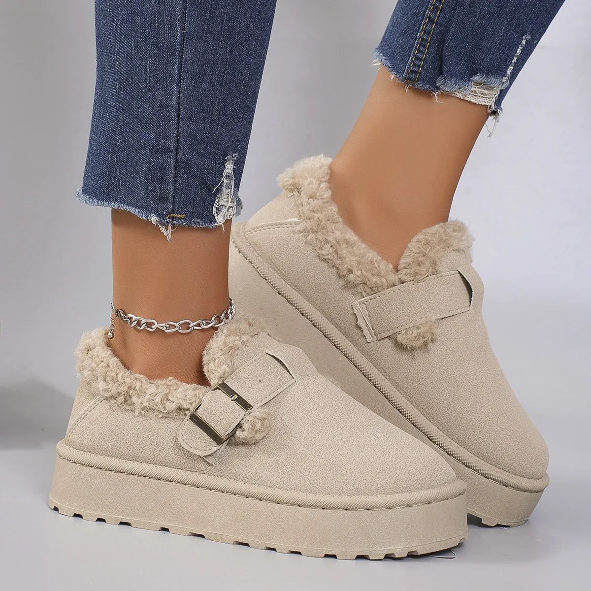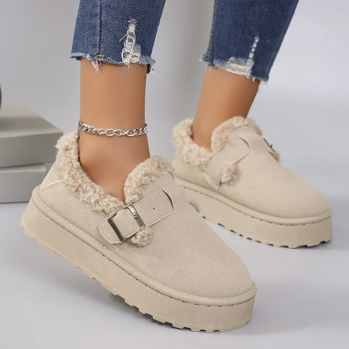 New Winter Women’s Shoes Boken Shoes Plush Fashion Retro Bean Shoes Cotton Women’s Flat Sole Slippers Platform Women Boots
