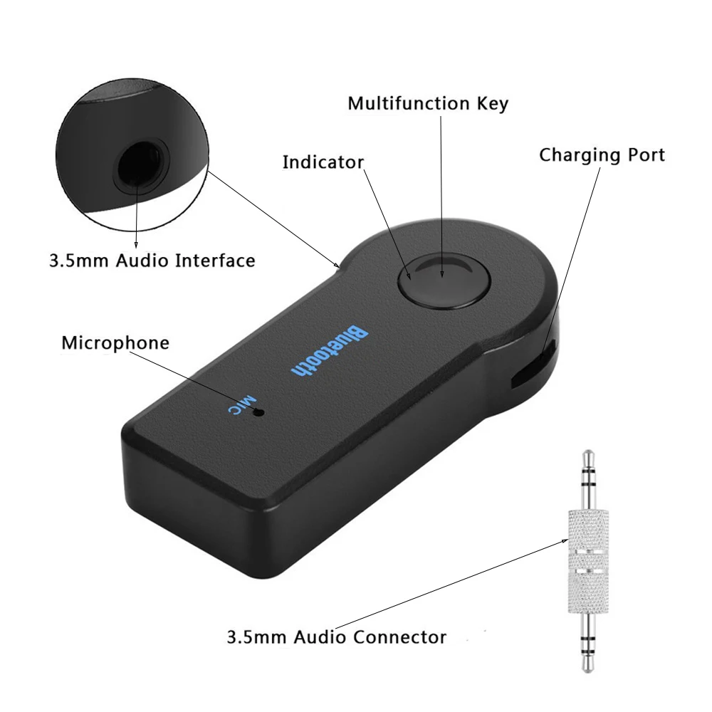 1. Two-way connector: This audio receiver uses a two-way 3.5mm metal audio connector, which is detachable, compact and easy to carry.