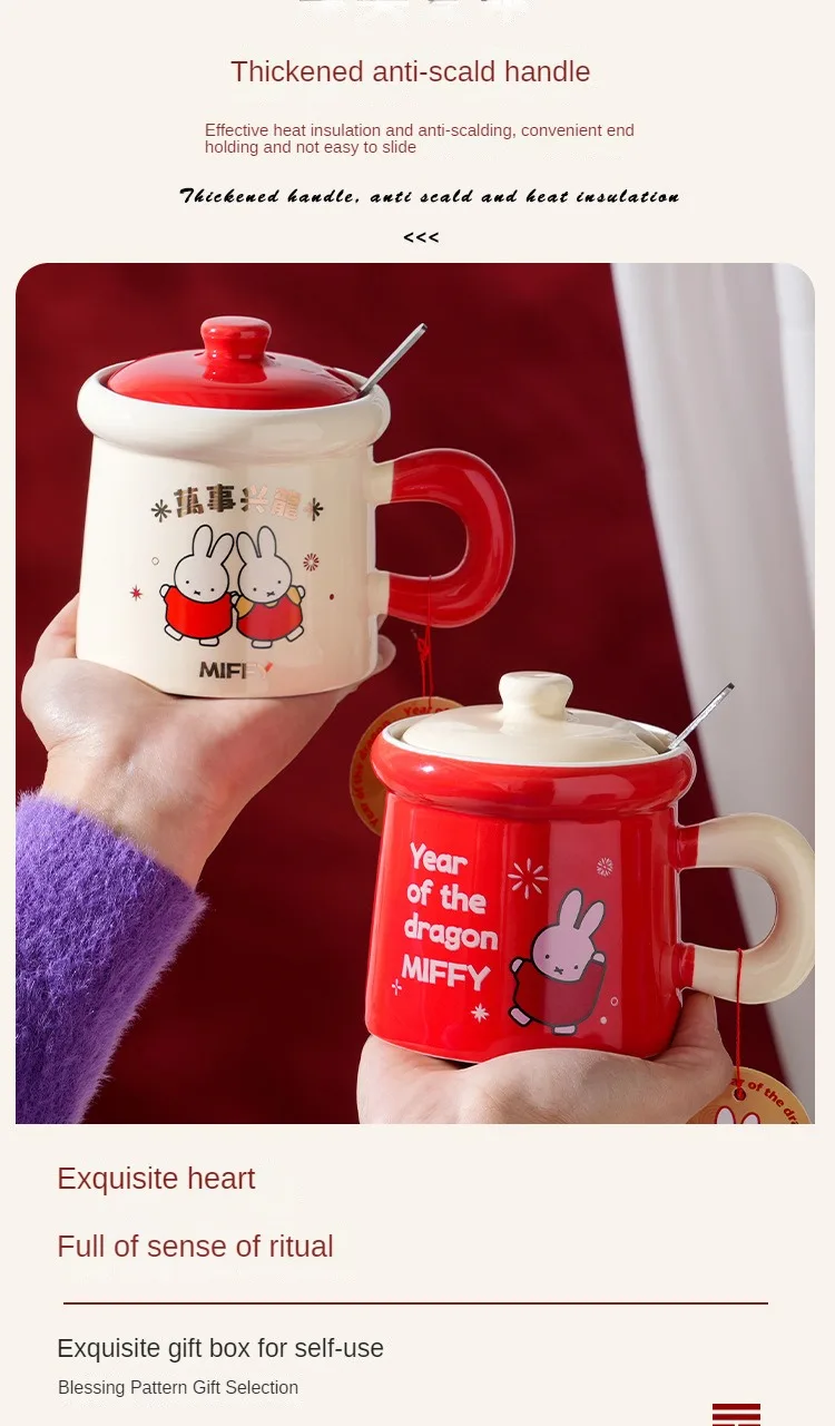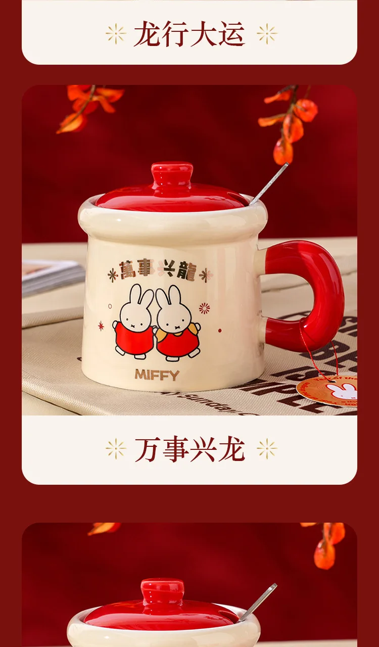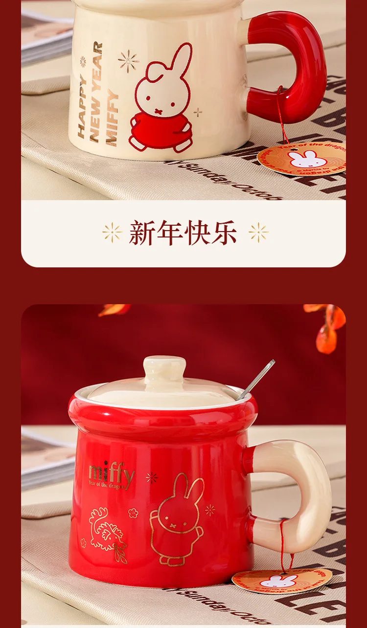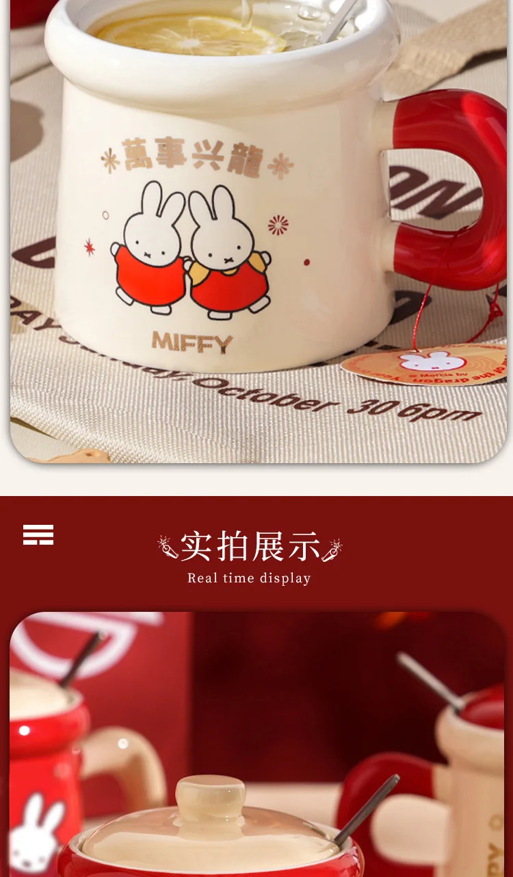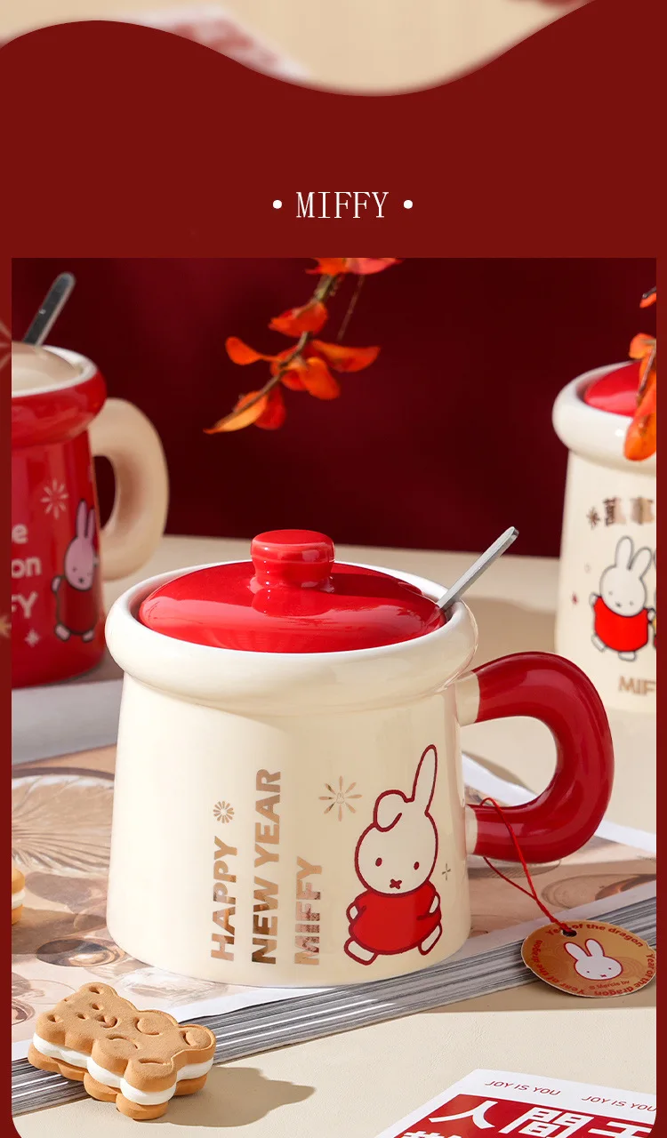 New Year Miffy Rabbit Mug Good-looking Lovers Cup Gift Ceramics Spoon with Lid Girl Student Household Cartoon Comic