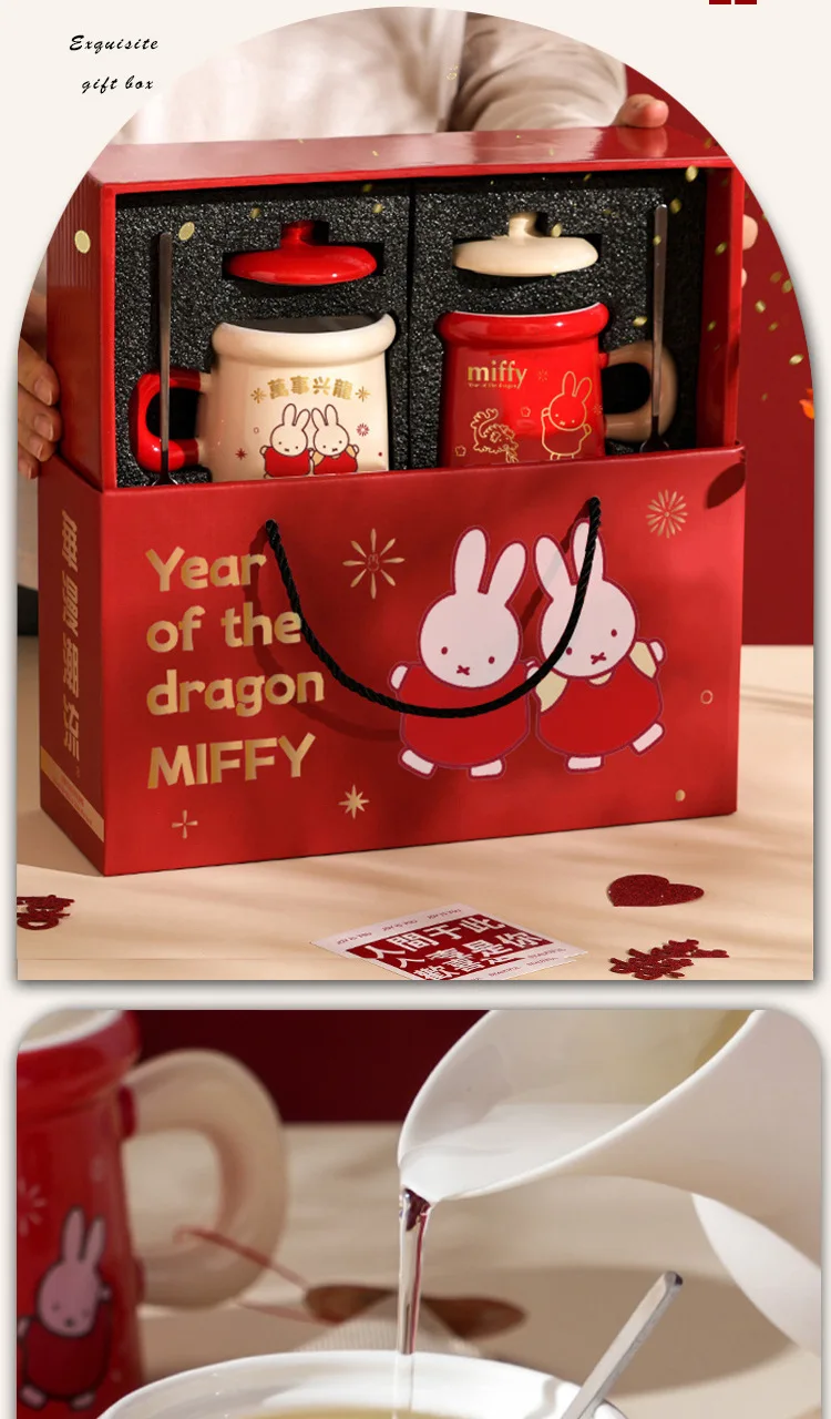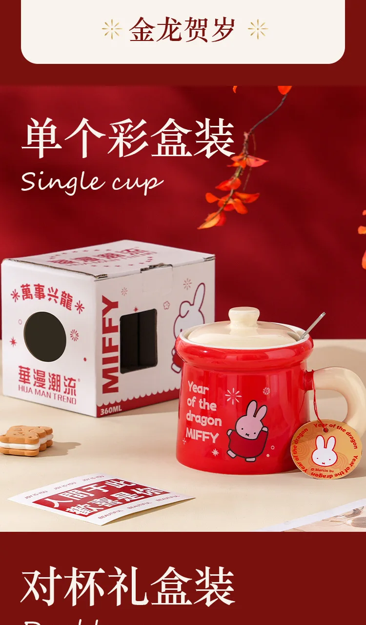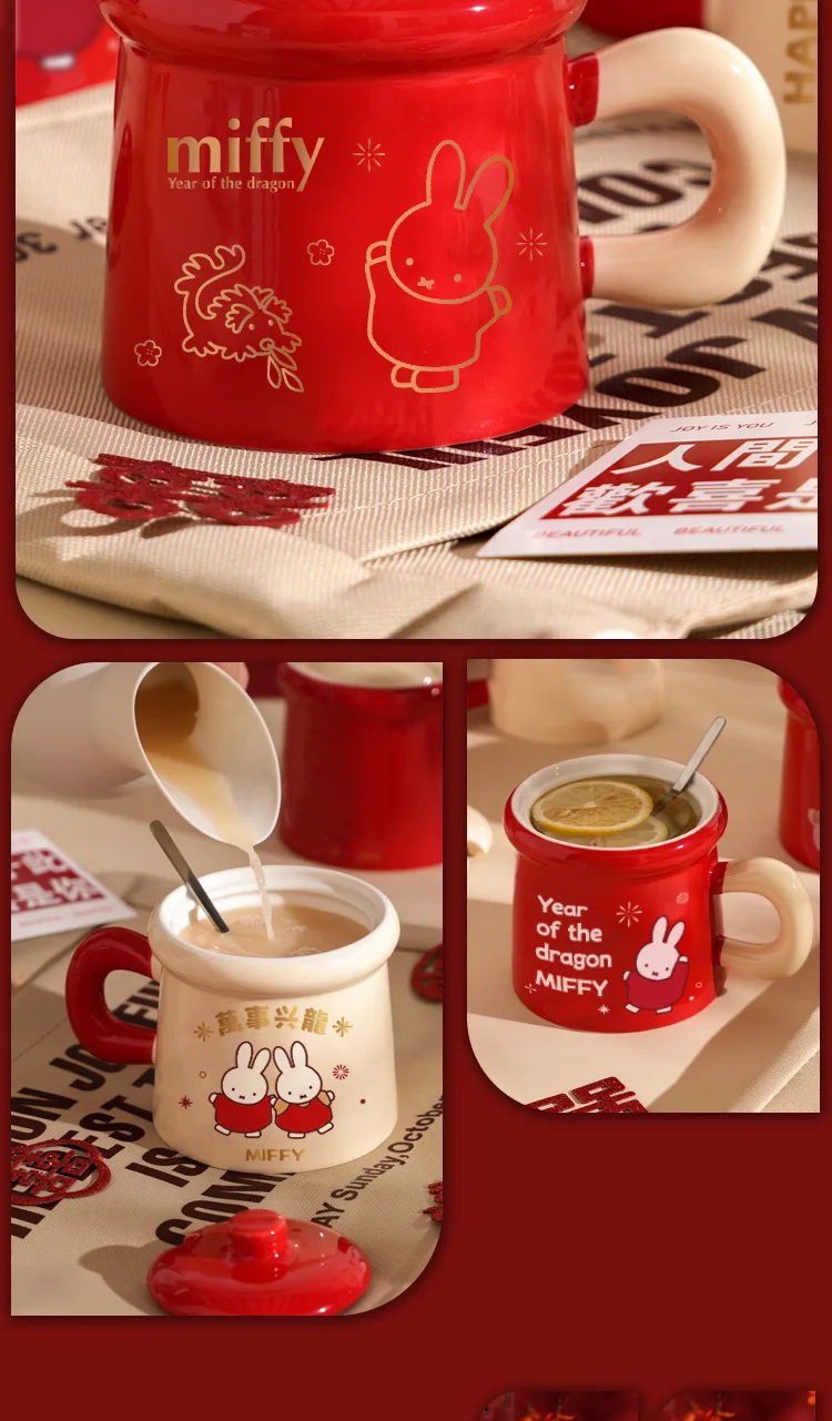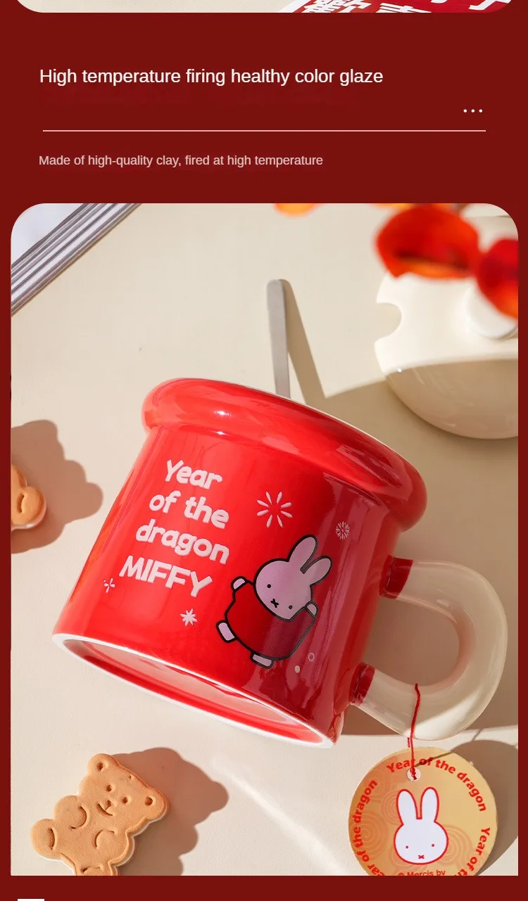 New Year Miffy Rabbit Mug Good-looking Lovers Cup Gift Ceramics Spoon with Lid Girl Student Household Cartoon Comic