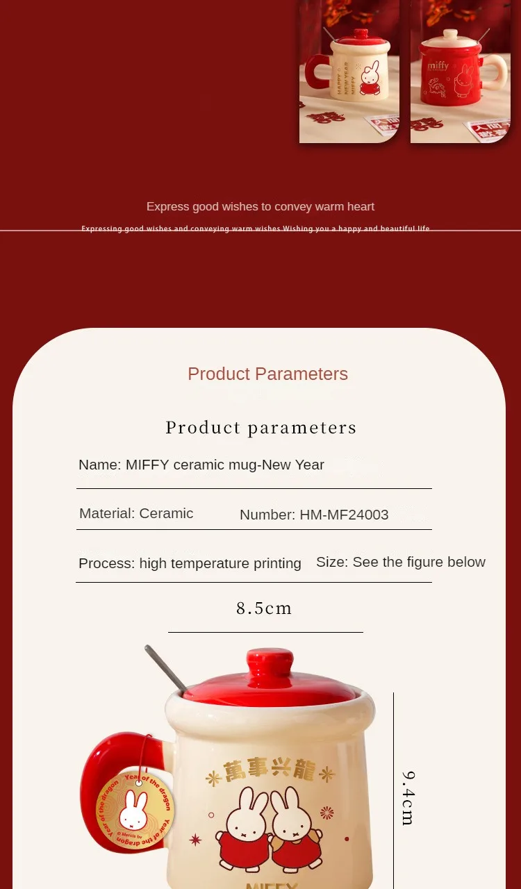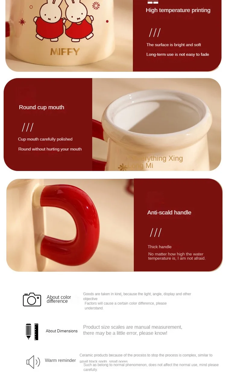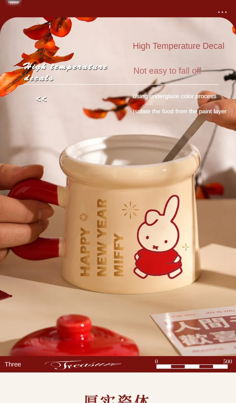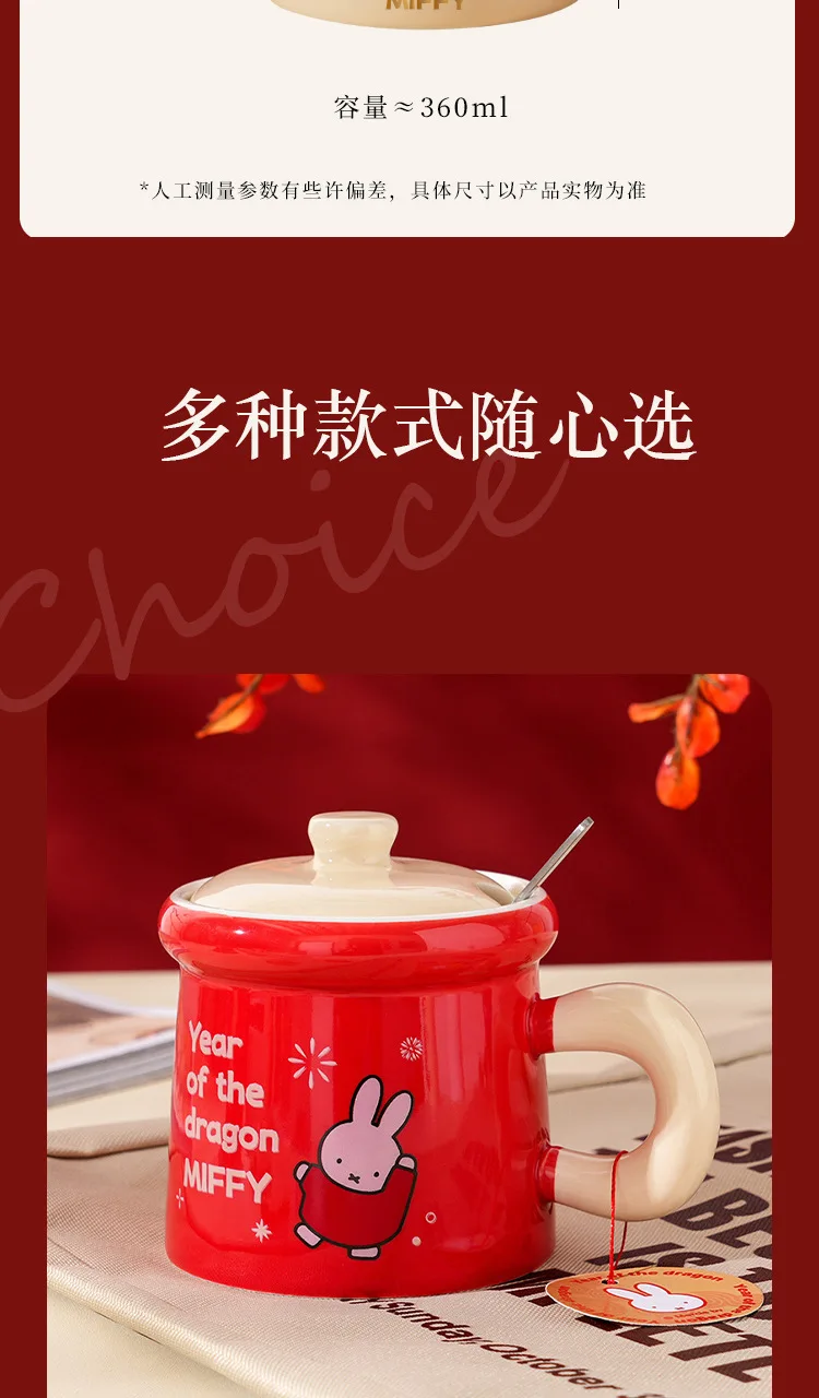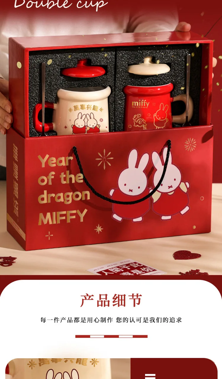 New Year Miffy Rabbit Mug Good-looking Lovers Cup Gift Ceramics Spoon with Lid Girl Student Household Cartoon Comic