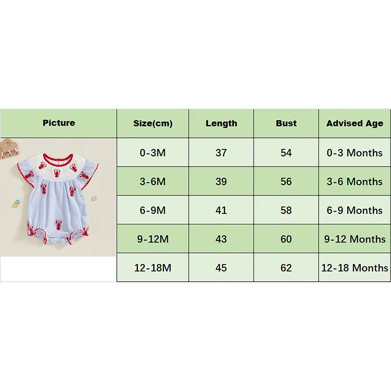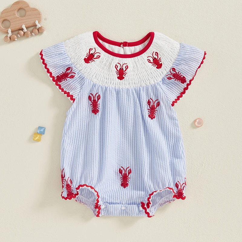 Newborn Baby Girl Crawfish Smocked Bubble Romper Lobster Ruffle Short Sleeve Bodysuit Jumpsuit Summer Outfits