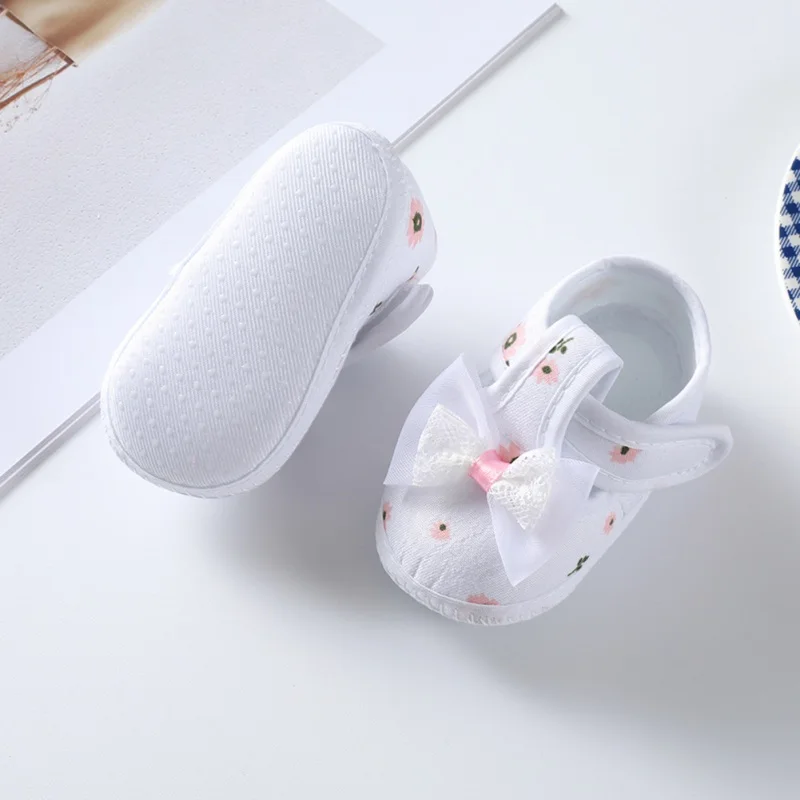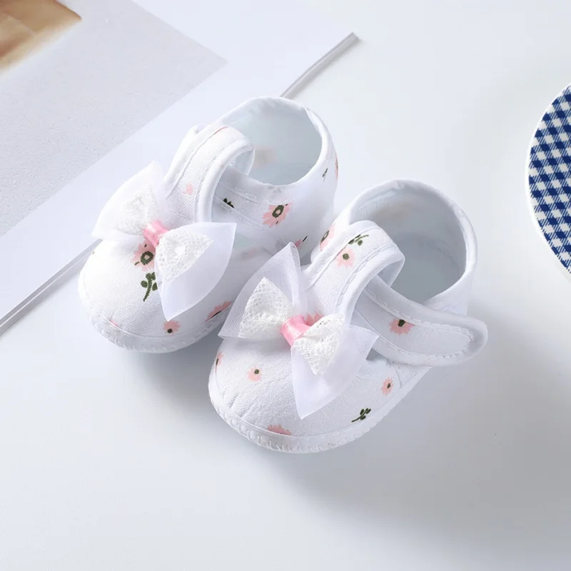 Newborn Baby Girl First Walkers Floral Bow Soft Sole Crib Toddler Shoes Infant Baby Girls Shoes Cute Toddlers Prewalkers 0-12M