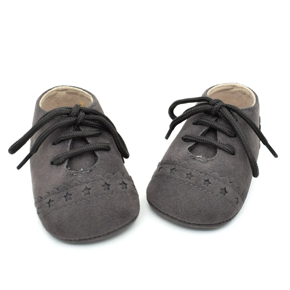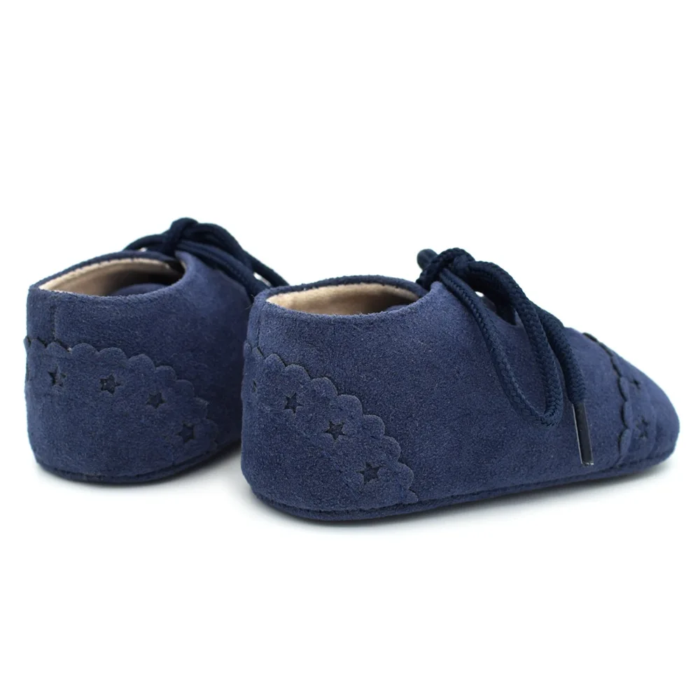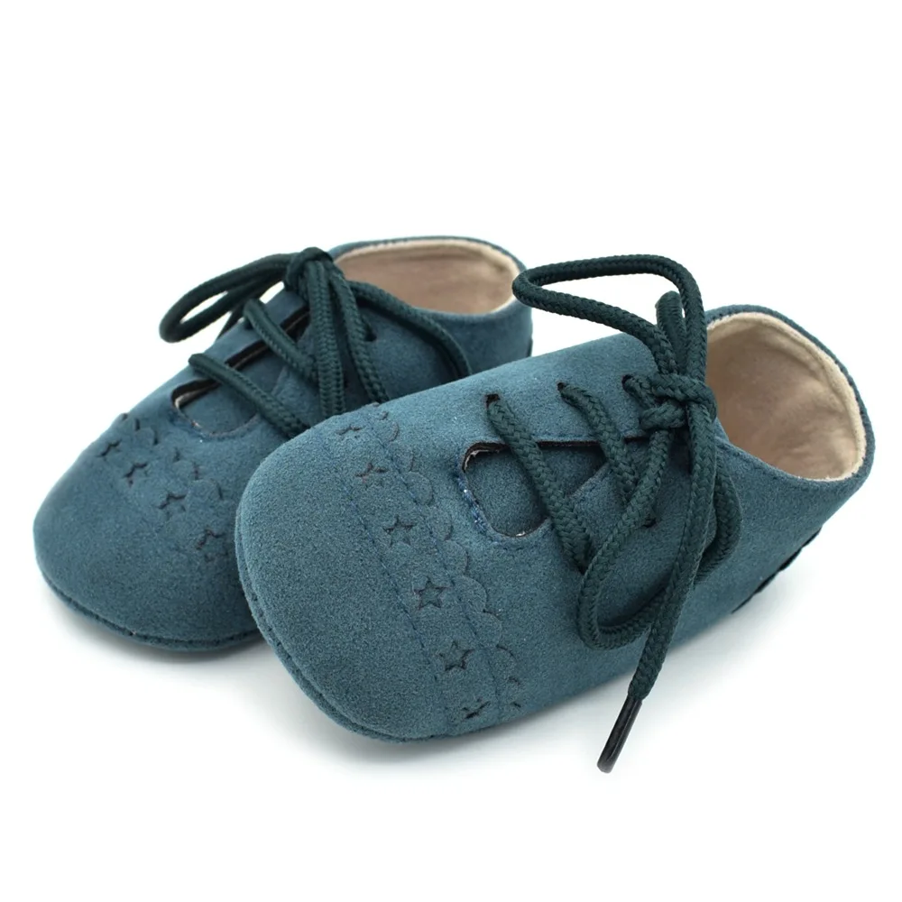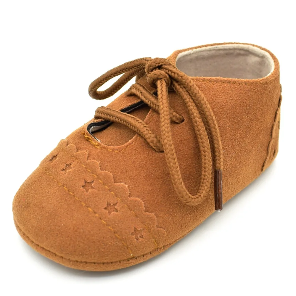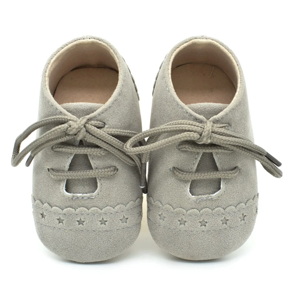 Newborn Kids Soft Sole Suede Leather Crib Shoes for Boys and Girls Toddler Lace-up Footwear for 0-18 Months First Walker Baby