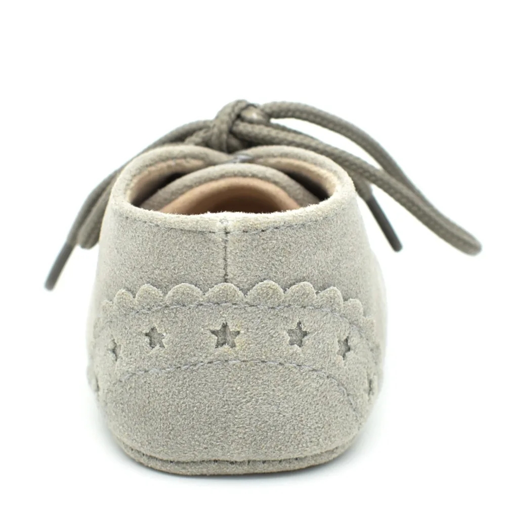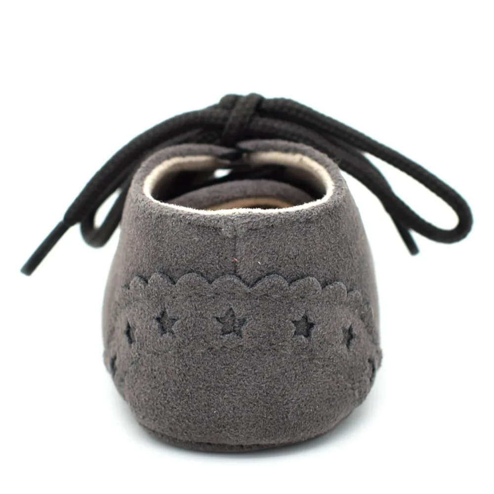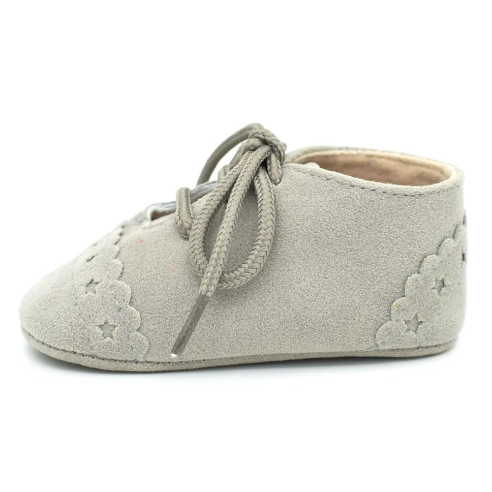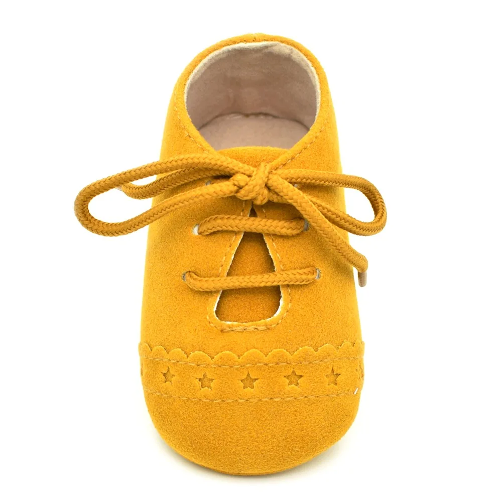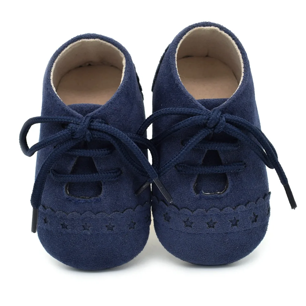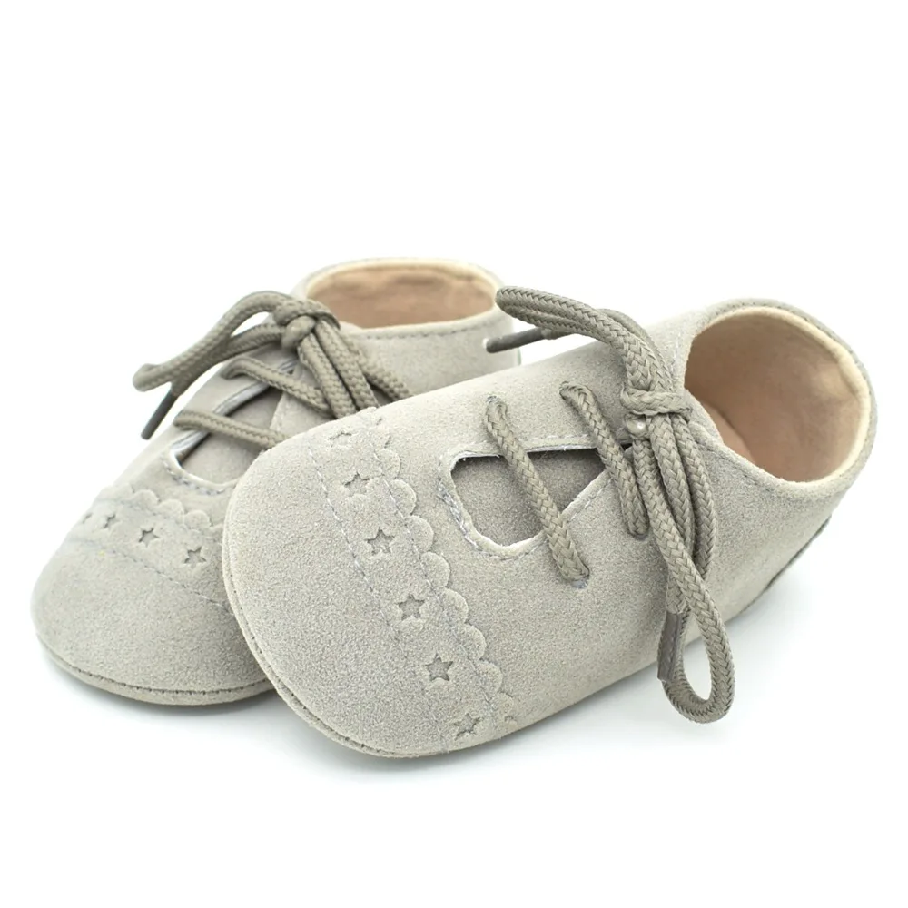 Newborn Kids Soft Sole Suede Leather Crib Shoes for Boys and Girls Toddler Lace-up Footwear for 0-18 Months First Walker Baby