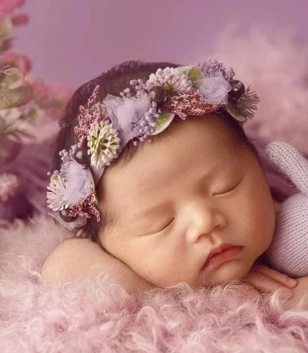 Newborn Photography Prop,Baby Purple Wrap,Headband Backdrop Blanket,For 0-6 Month Infant Fotografia Studio Shooting Accessories