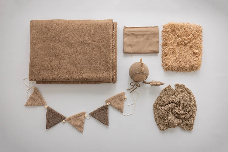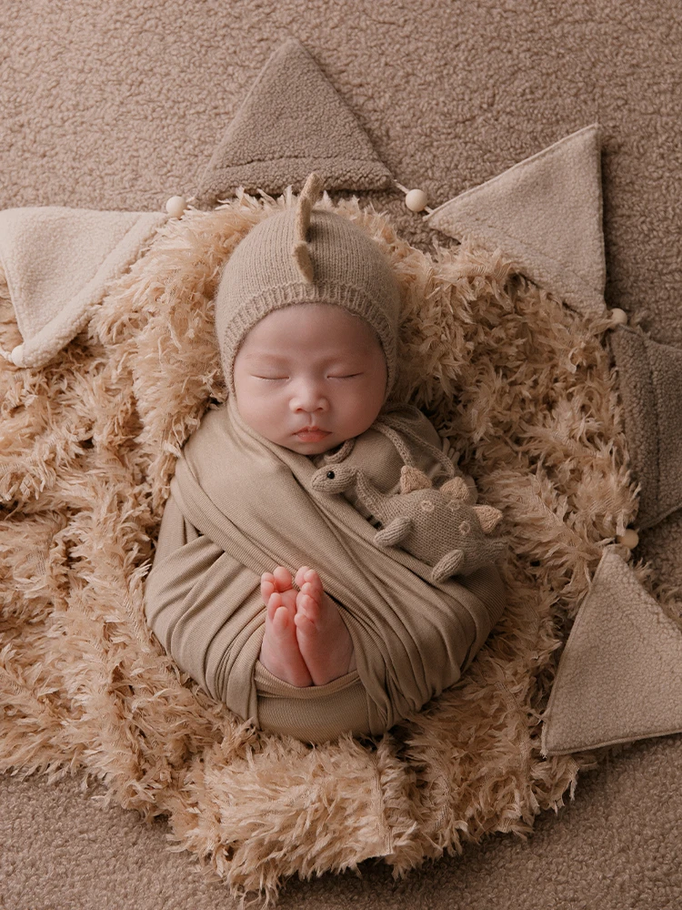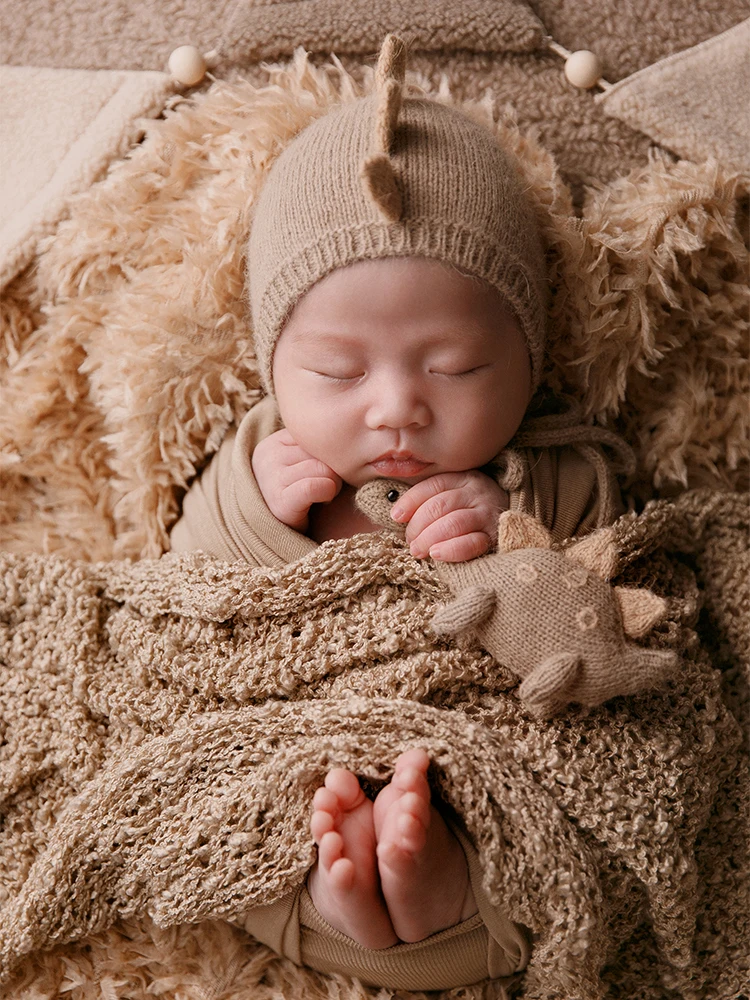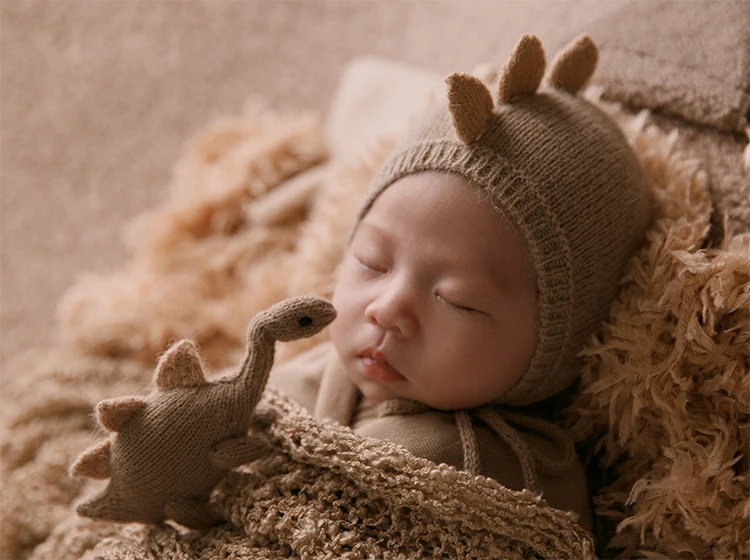 Newborn Wrap Photography Accessories Knitted Dinosaur Hat Doll Feather Blanket Plush Background Studio Brown Photo Theme Props