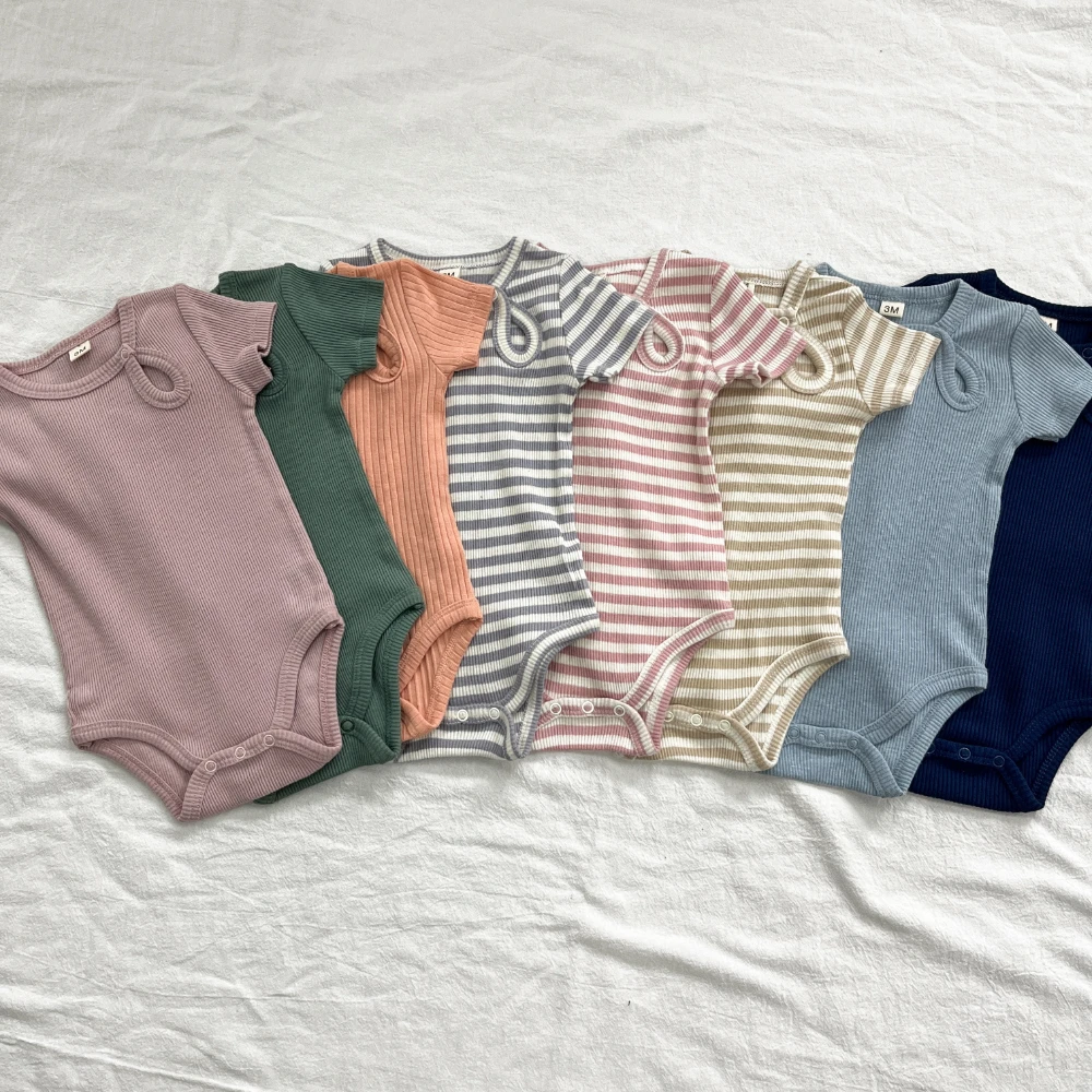 Newborns Onesies Summer Baby Bodysuits Round Necks Solid Color Tights Comfortable Cute Romper Clothing 3-12M