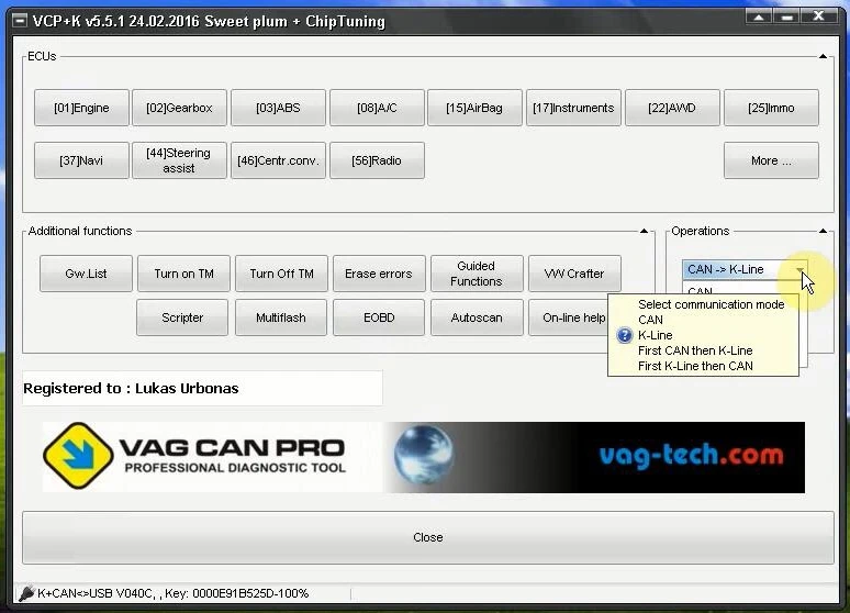 In addition,a standard K-line.In other words,VCP fully supports the diagnosis B7 models, but only in the CAN-Antrieb.Other controllers are available through the K-Line and KWP2000 KWP1281 protocols.