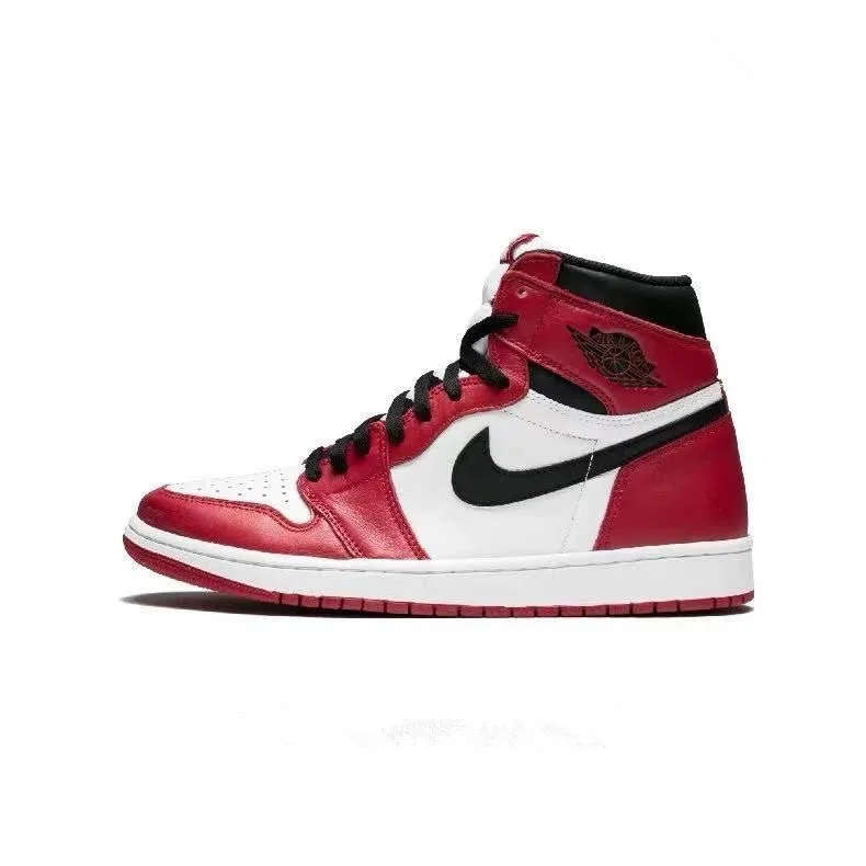 Nike Original Air Jordan 1 High Mens Retro Classic Basketball Sneakers Classic Black and Red Colorway