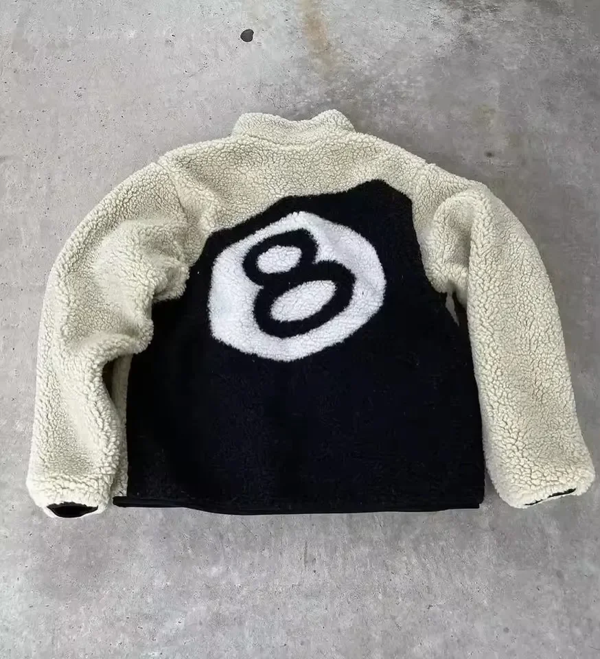 No. 8 Billiard Warm Double Sided Jacket Y2K Coats Mens Womens Letter Embroidery Oversized Baseball Jacket Zipper Cotton Jacket