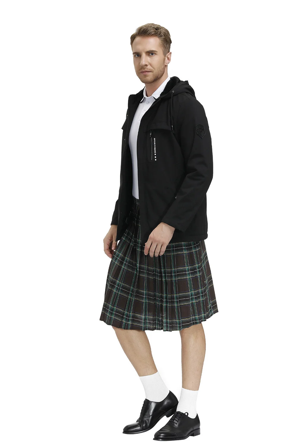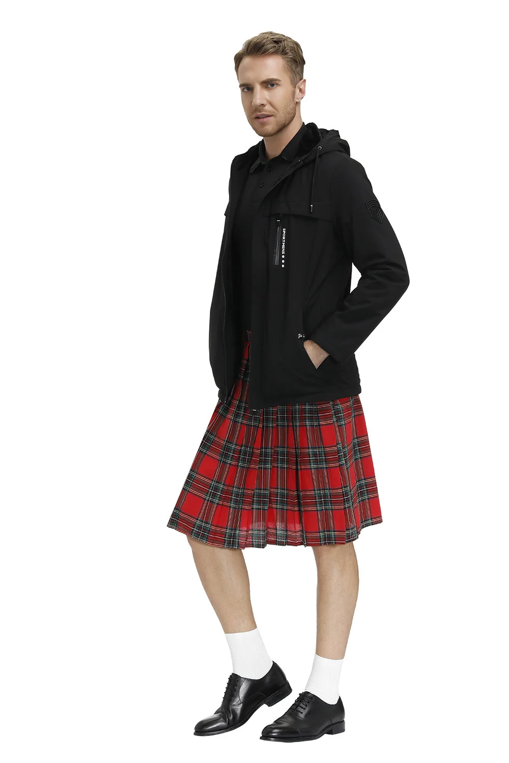 Mens Fashion Casual Retro Scottish Style Plaid Contrast Waistband Pleated Skirt 4