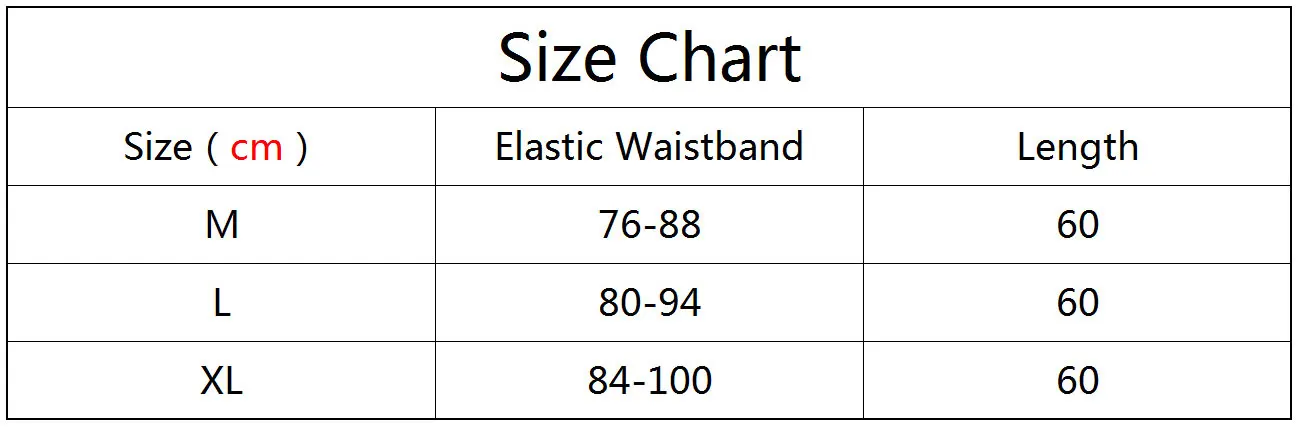 M elastic waistband: 76CM–88CM; length: 60CM