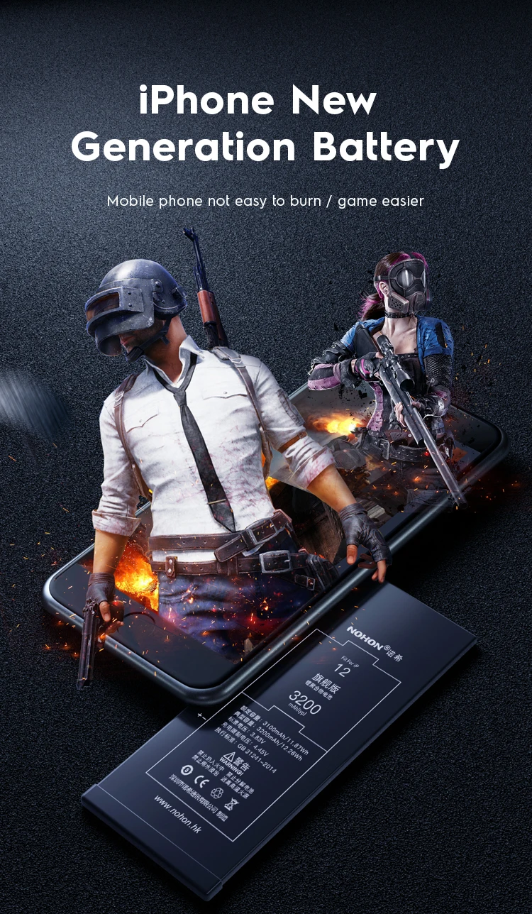 NOHON Phone Battery for iPhone 12 12Mini High Capacity Bateria for iPhone 14 15 11 13 Pro X XR XS Max 8 7 6S Plus SE 2020 SE2