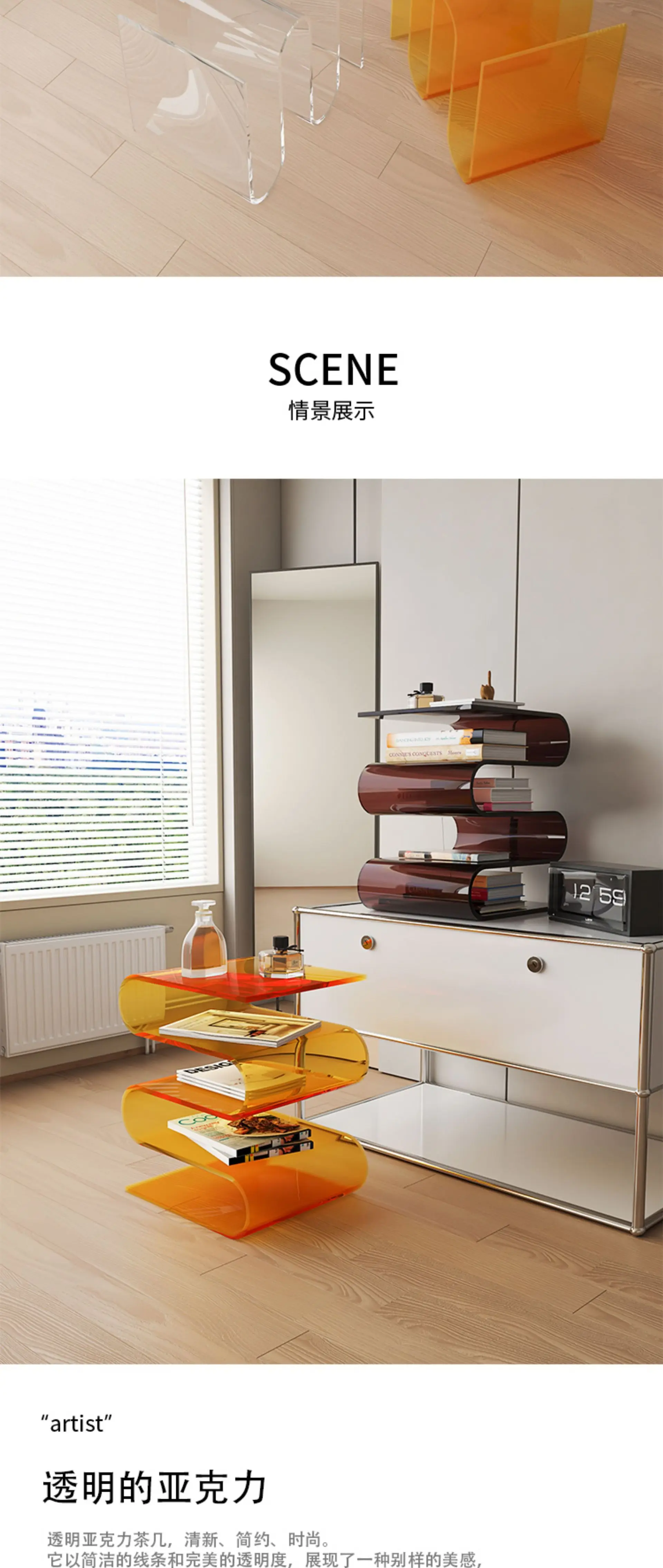 Nordic Acrylic Transparent Side Table Light Luxury Simple Creative Home Storage Rack Floor-standing Small Bookshelf