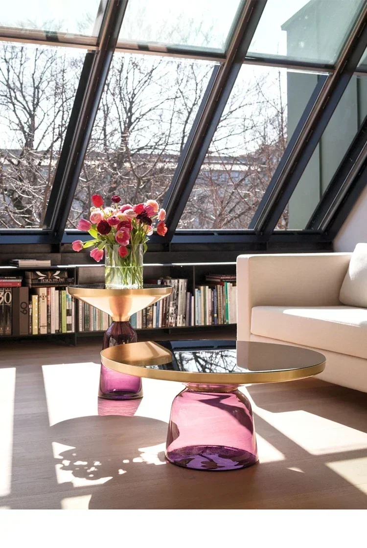 Nordic Creative Glass Round Coffee Table Combination Living Room Reception Side Table Transparent Light Luxury Coffee Tables