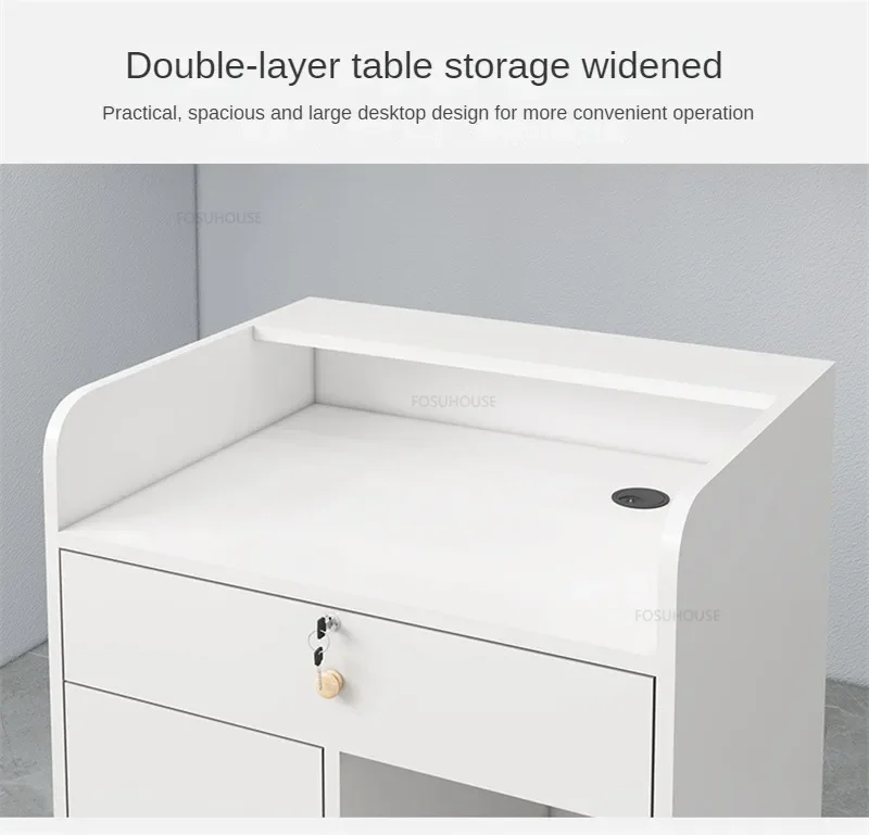 Modern simple beauty salon checkout page curved bar table nail salon clothing store reception desk store small front desk