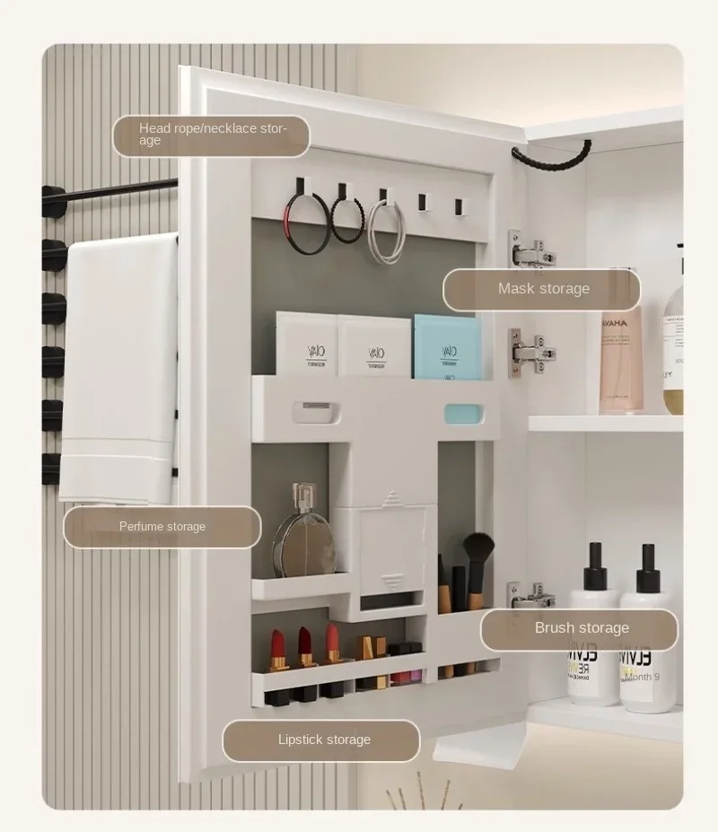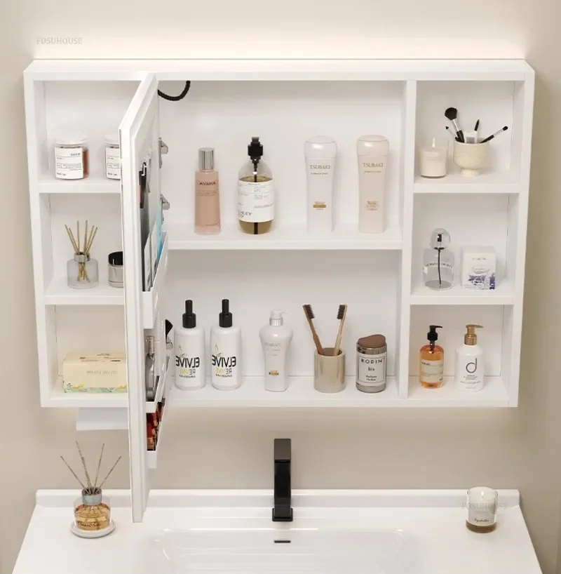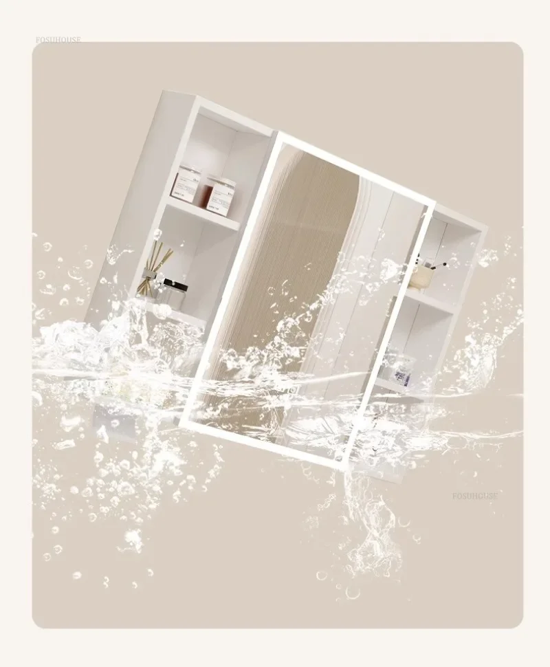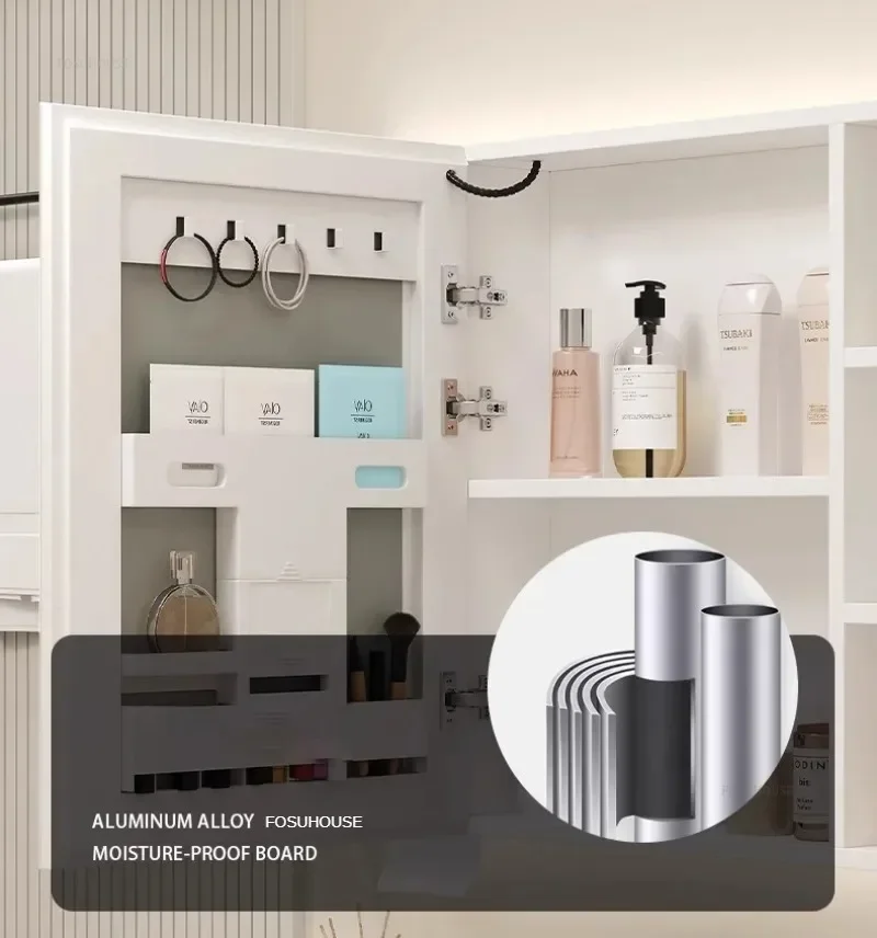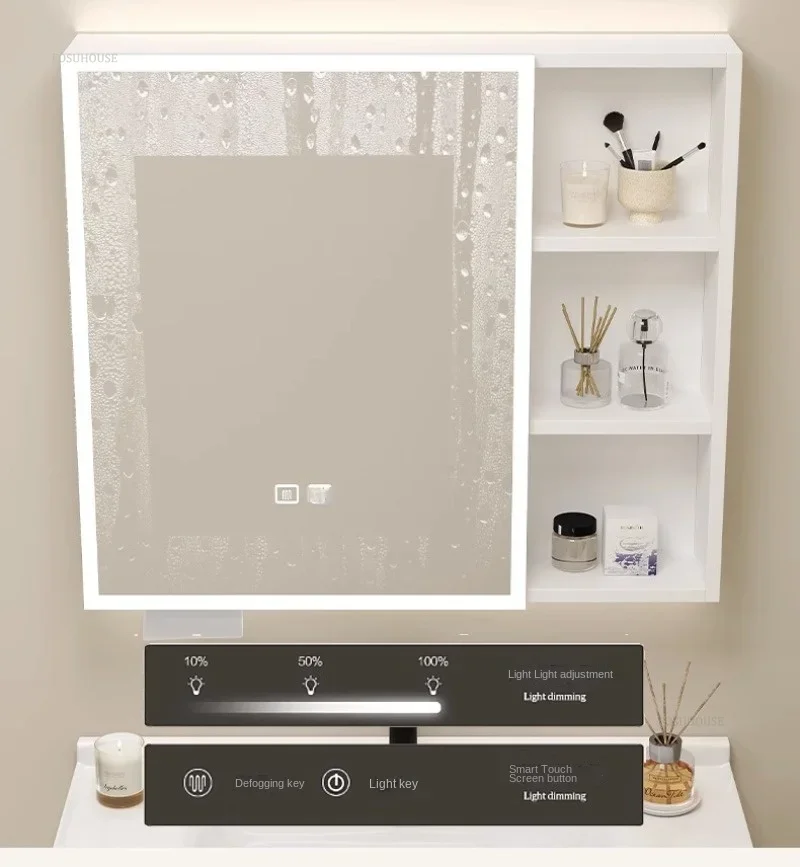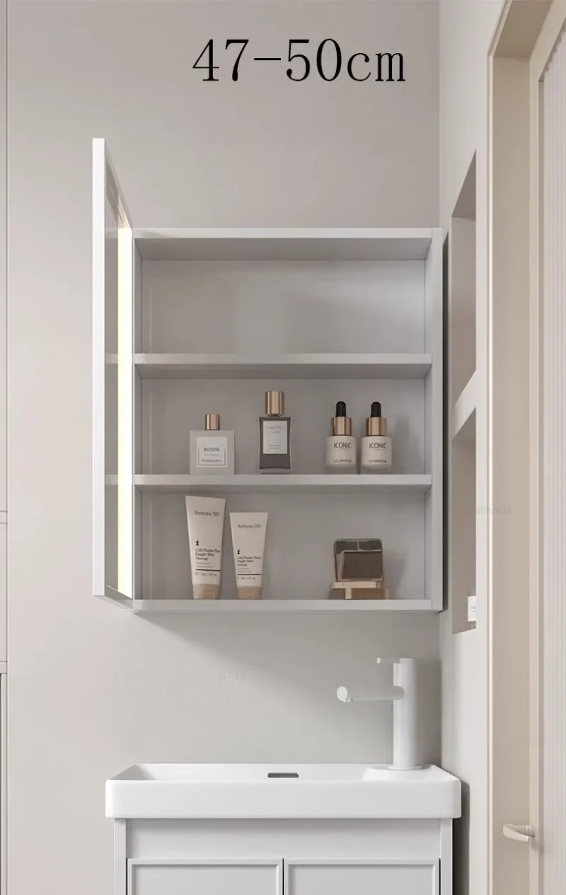 Nordic Smart Bathroom Mirror Cabinet Space Aluminum Storage Rack High-definition Mirror Bathroom Wall-mounted Cabinets p