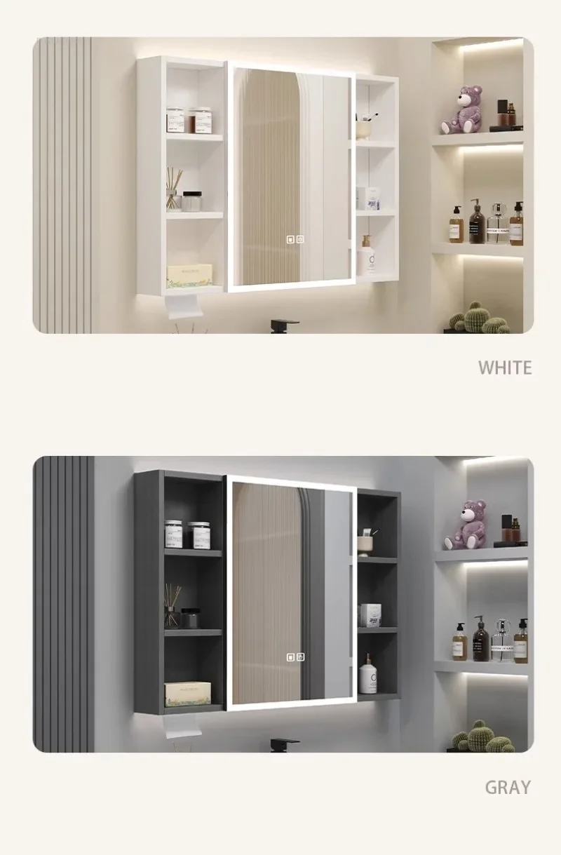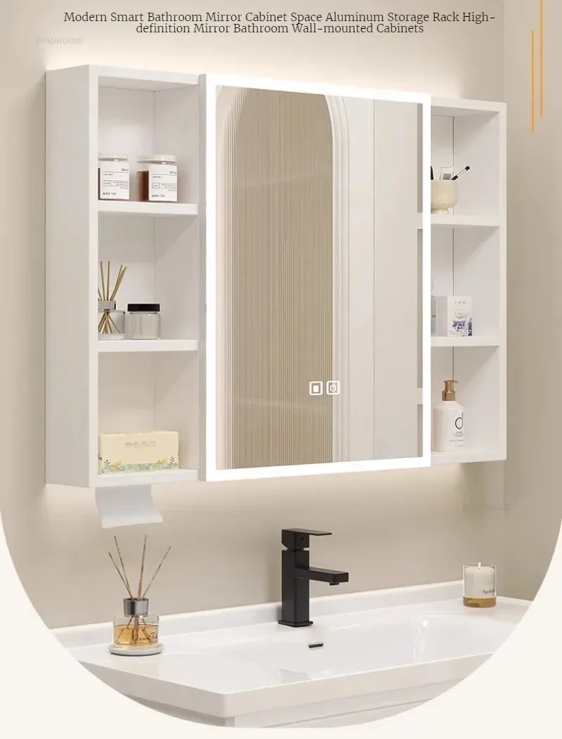 Modern Smart Bathroom Mirror Cabinet Space Aluminum Storage Rack High-definition Mirror Bathroom Wall-mounted Cabinets