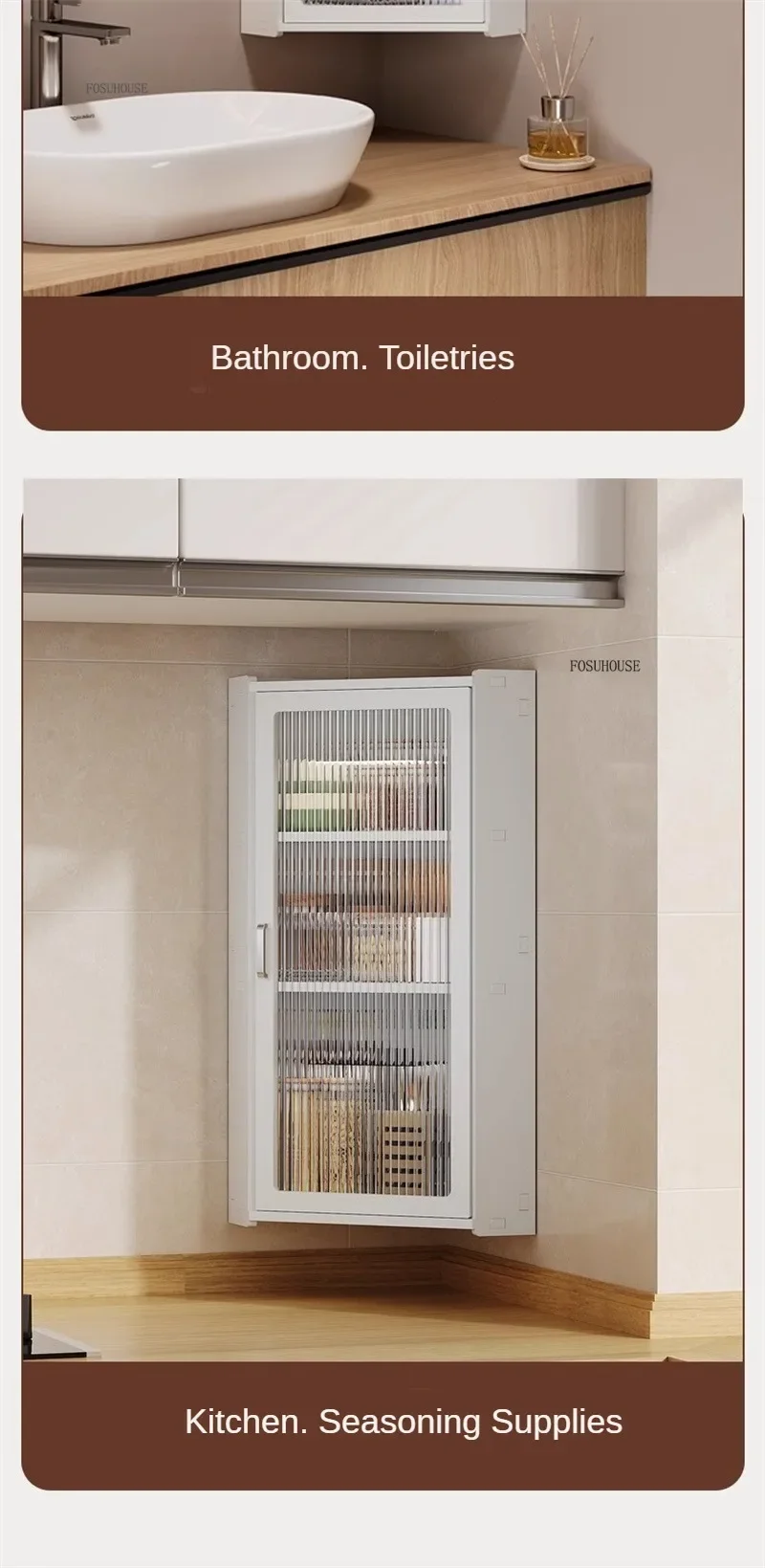 Nordic Wall-mounted Bathroom Cabinet Modern Waterproof Cosmetics Storage Crack Shelves Designer Light Luxury Home Furniture