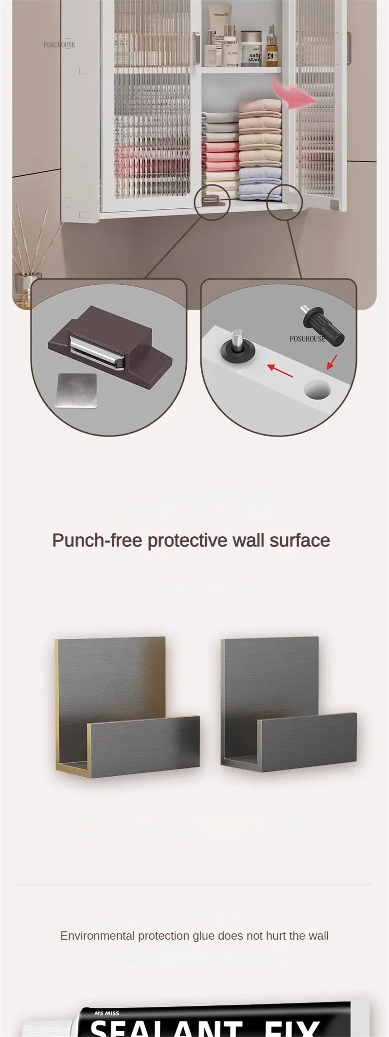 Nordic Wall-mounted Bathroom Cabinet Light Luxury Home Furniture Modern Multi-layer Waterproof Cosmetics Storage Crack Shelves