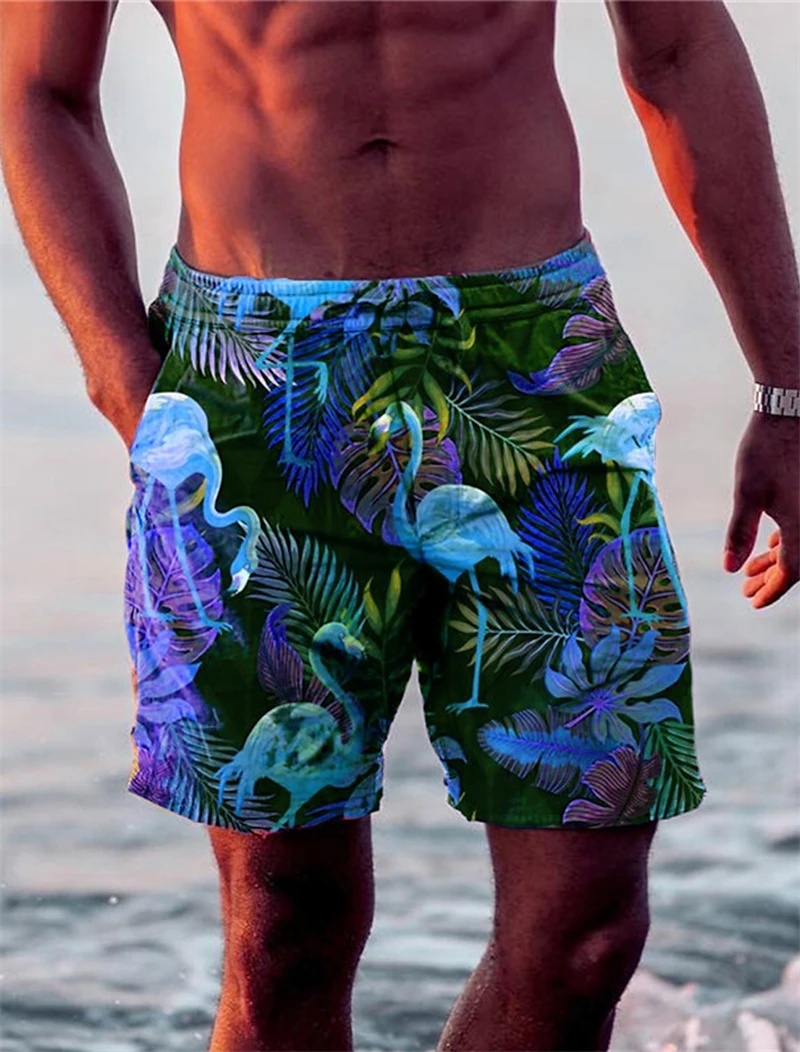 Novelty Tropical Plant Leaf 3D Mens Graphic Shorts Fashion Flamingo Print Hawaiian Beach Trunks Surfing Board Ice Short Pants