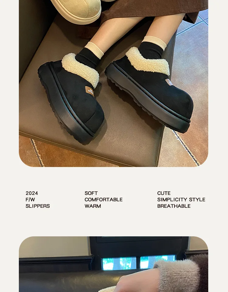 2024 Women's Snow Boots Winter Mid-Tube Plus Velvet Thickened Warm Cotton Shoes Fur Integrated Fashion Platform Female Booties