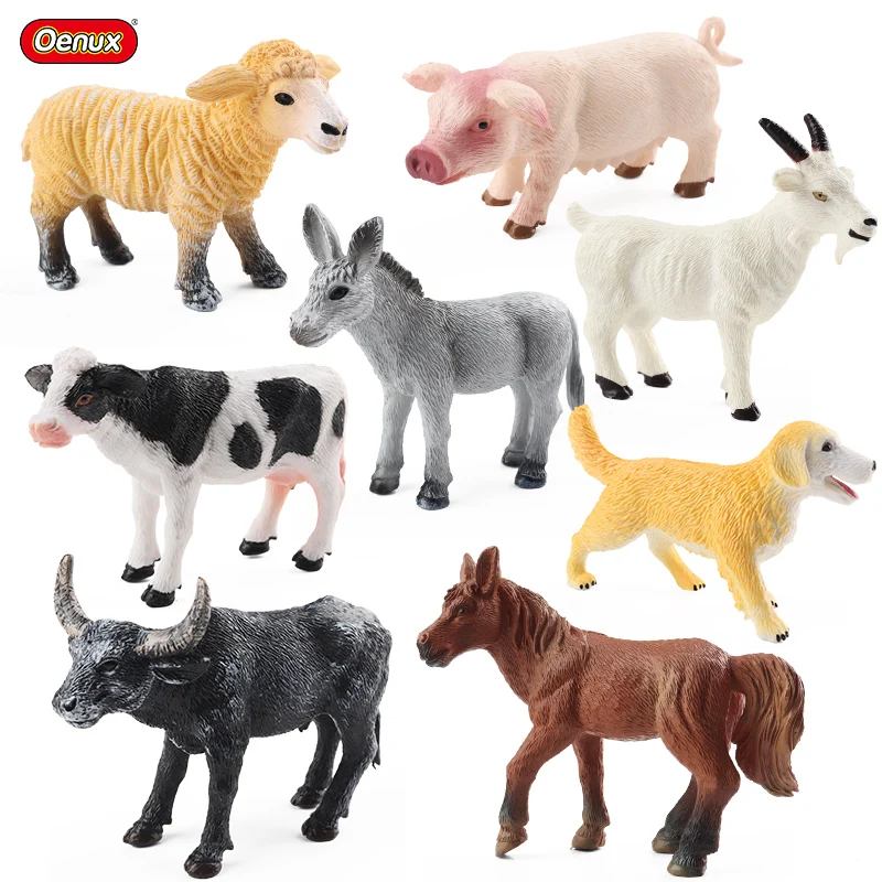 Oenux Farm Model Simulation Horse Cow Goat Donkey Pig Dog Action Figures Poultry Animals Figurine Education Lovely Kids Toy Gift