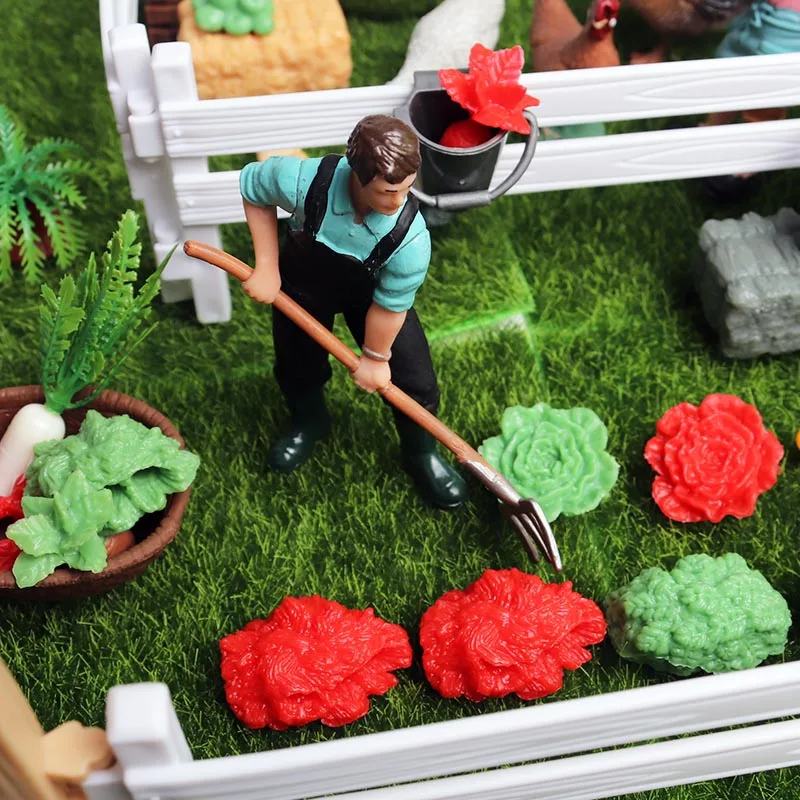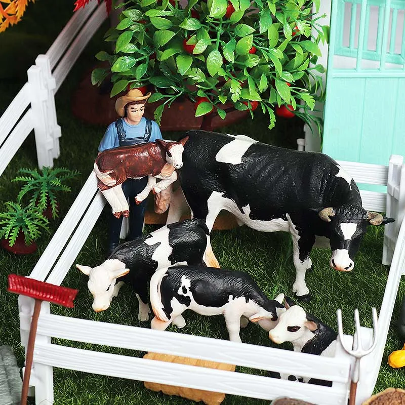 Feature:Oenux Home Decoration Equestrian Fencing Palm Trees Simulation Farm Cow Horse Animal Model Action Figures Miniature Cute Kid Toy