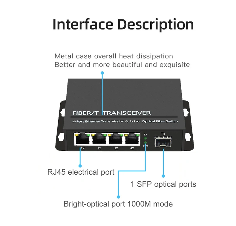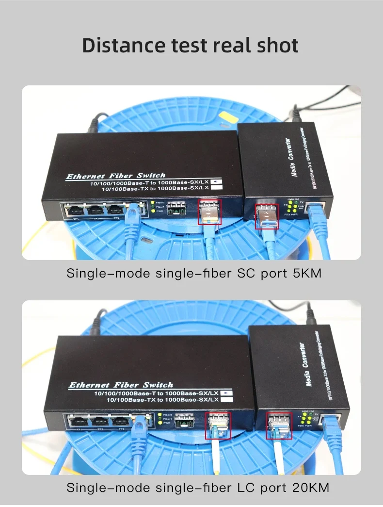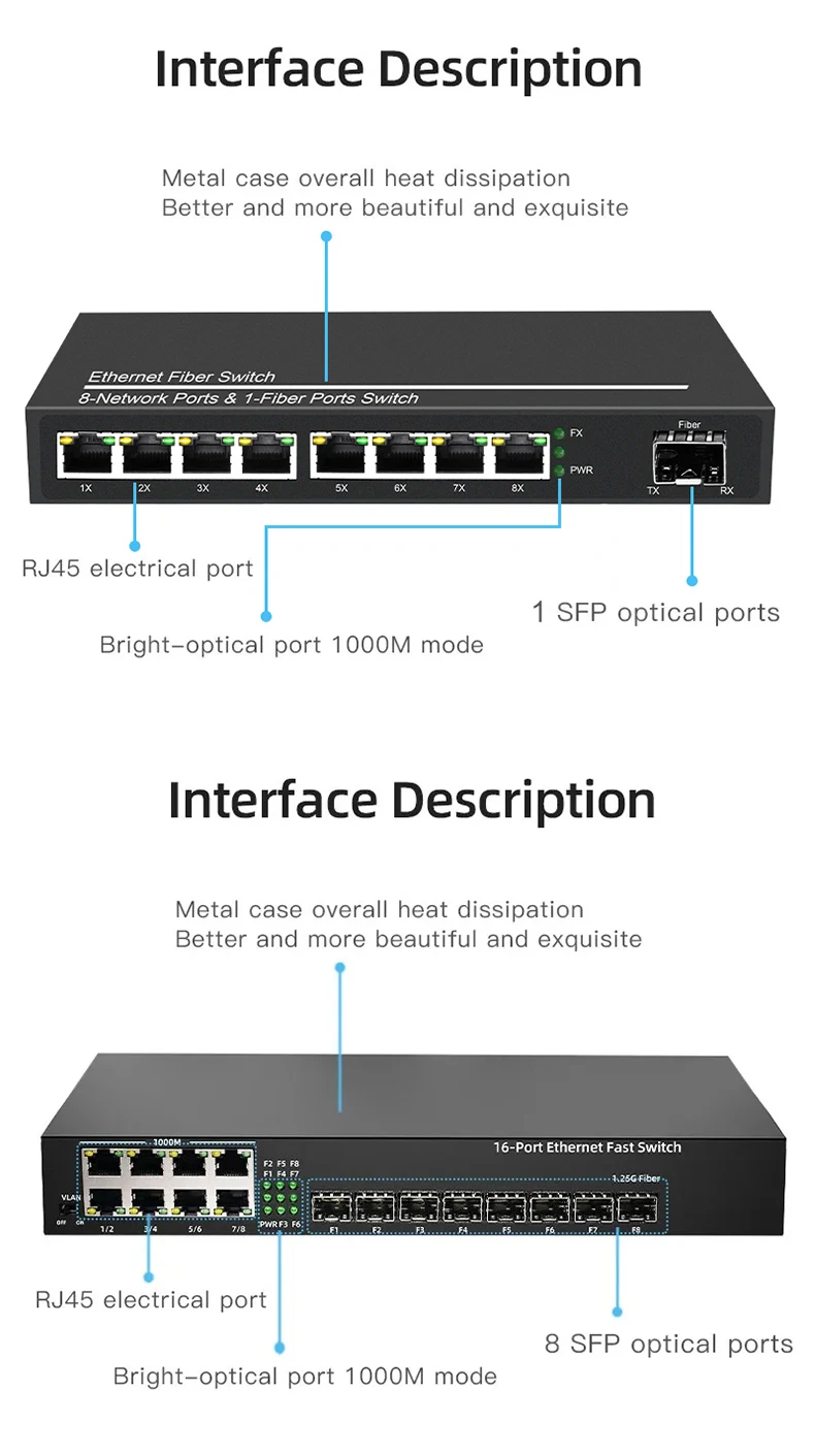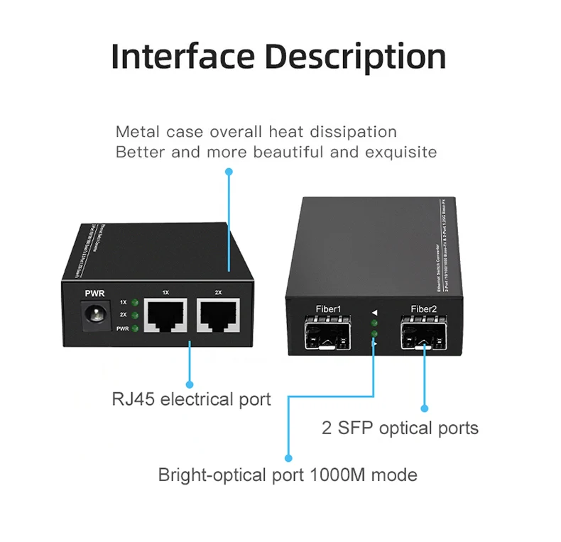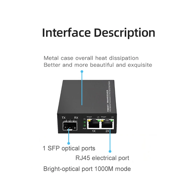 OMAY Gigabit Media Converter 1 Port SFP to 2 RJ45 Gigabit optical fiber, GPON/EPON OLT Ethernet for IP camera 10/100/1000M