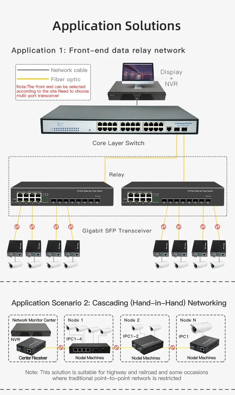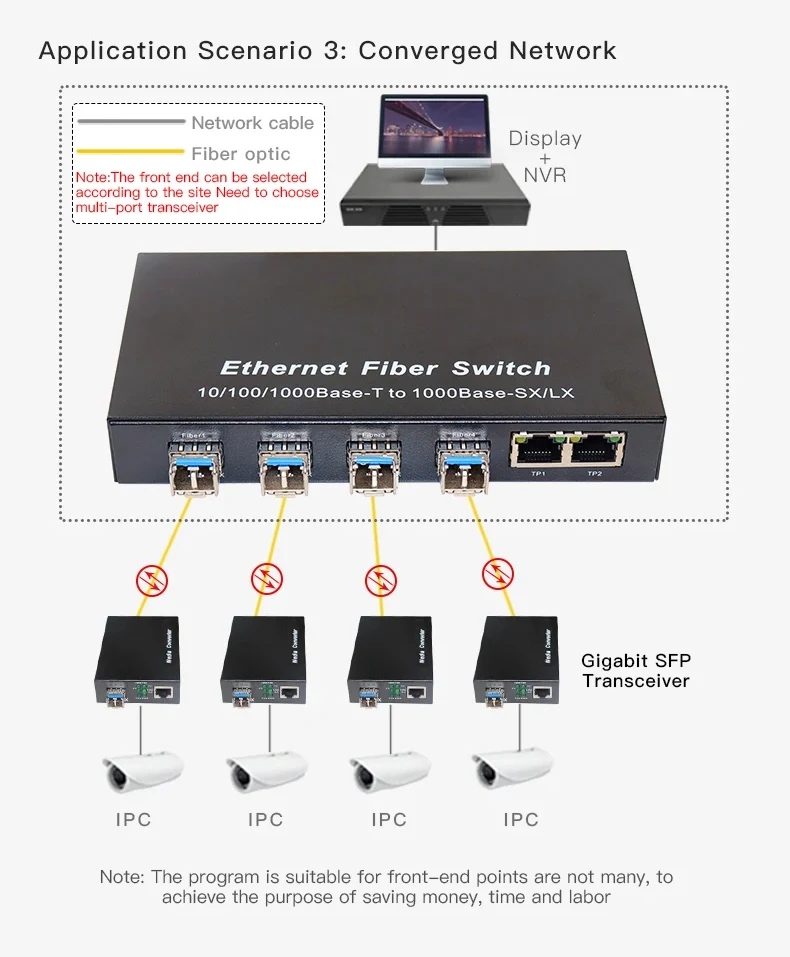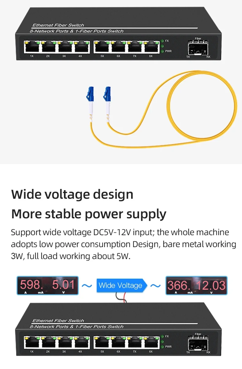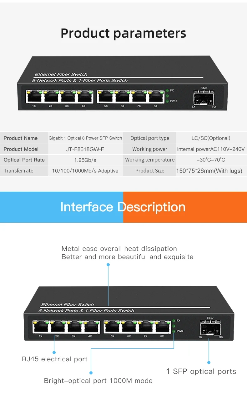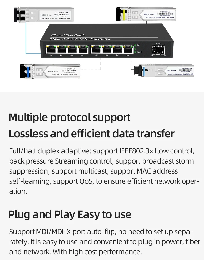 OMAY Gigabit Media Converter 1 Port SFP to 2 RJ45 Gigabit optical fiber, GPON/EPON OLT Ethernet for IP camera 10/100/1000M